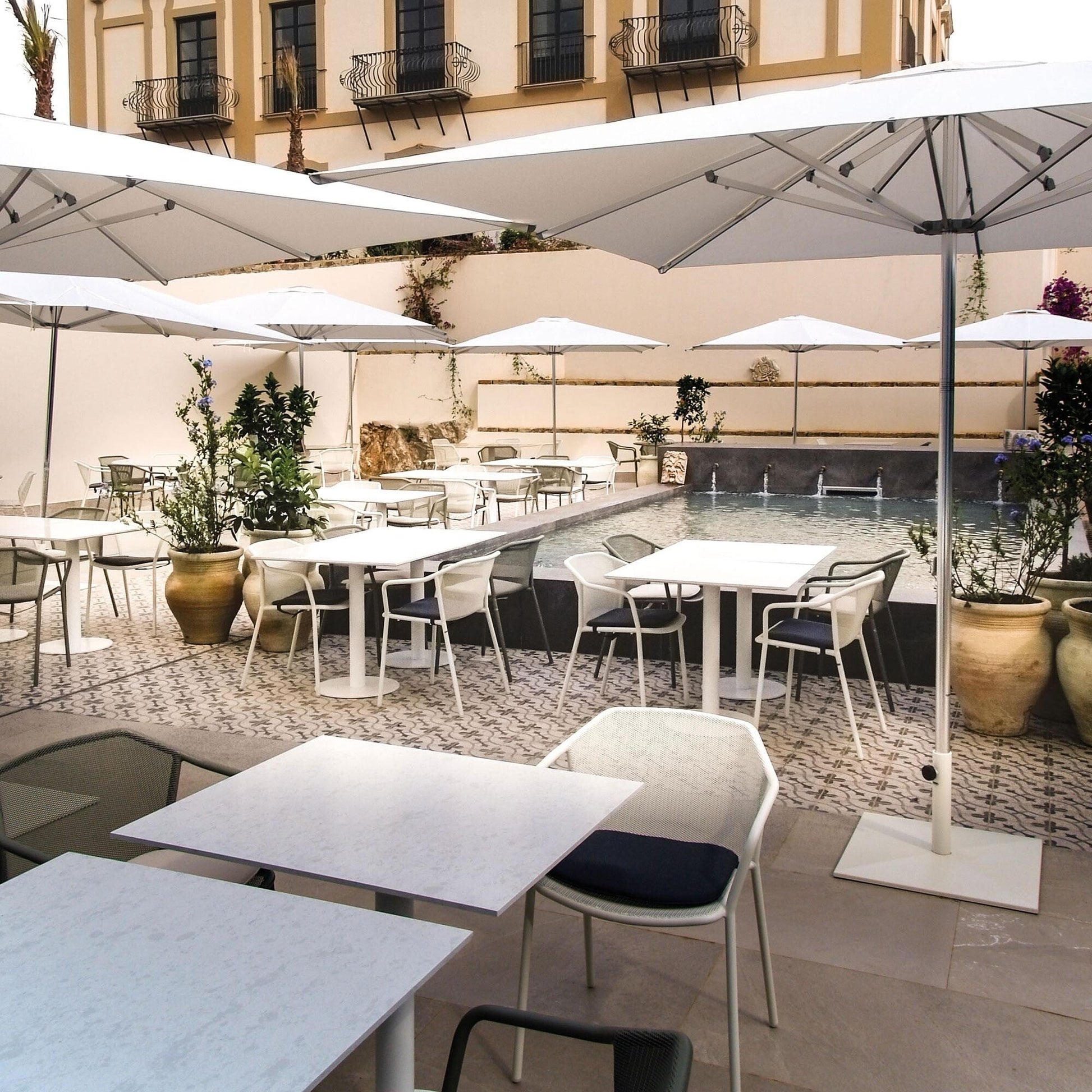 Die ausgestellten rückwärtigen Beine sorgen für eine gute Stabilität, während der Designstuhl selbst 60cm breit und 55cm tief ist. Die Sitzhöhe beträgt 45cm, die Armlehnen erreichen eine Höhe von 68cm und die Gesamthöhe misst 77cm. Mit einem Gewicht von 5,6kg ist der Darwin Gartenarmlehnstuhl leicht genug, um in verschiedenen Räumen platziert zu werden. Bis zu acht Modelle können übereinander gestapelt werden, was ihn zu einem idealen Bestandteil für Gartencafés, Atrium-Bars oder Terrassen macht.
