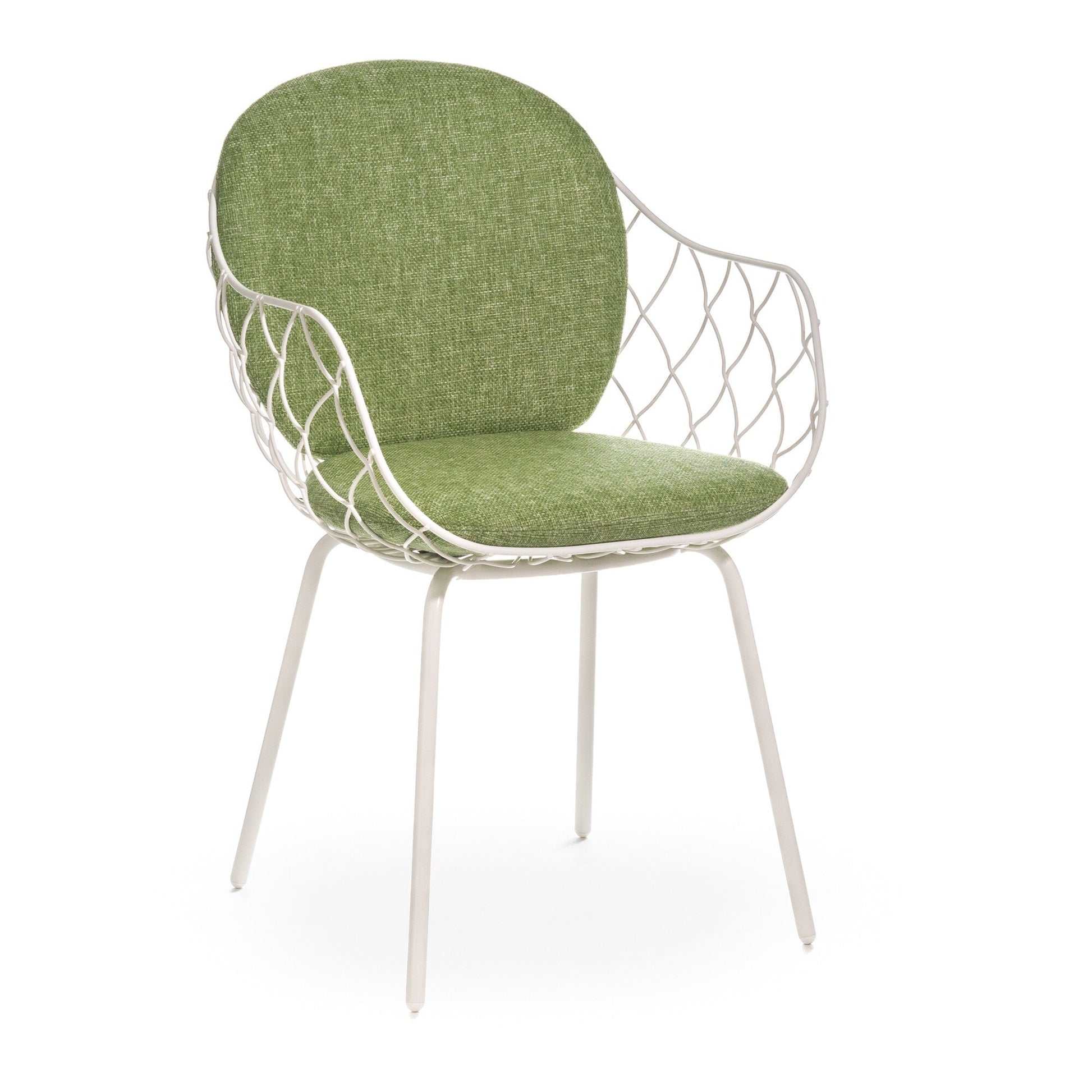 Ausführungen: Piña Gartenarmlehnstuhl / grün/Stoff Polyhedra 1104 grün/BxHxT 53x81x53cm/Gestell Stahlrohr weiß polyesterlackiert