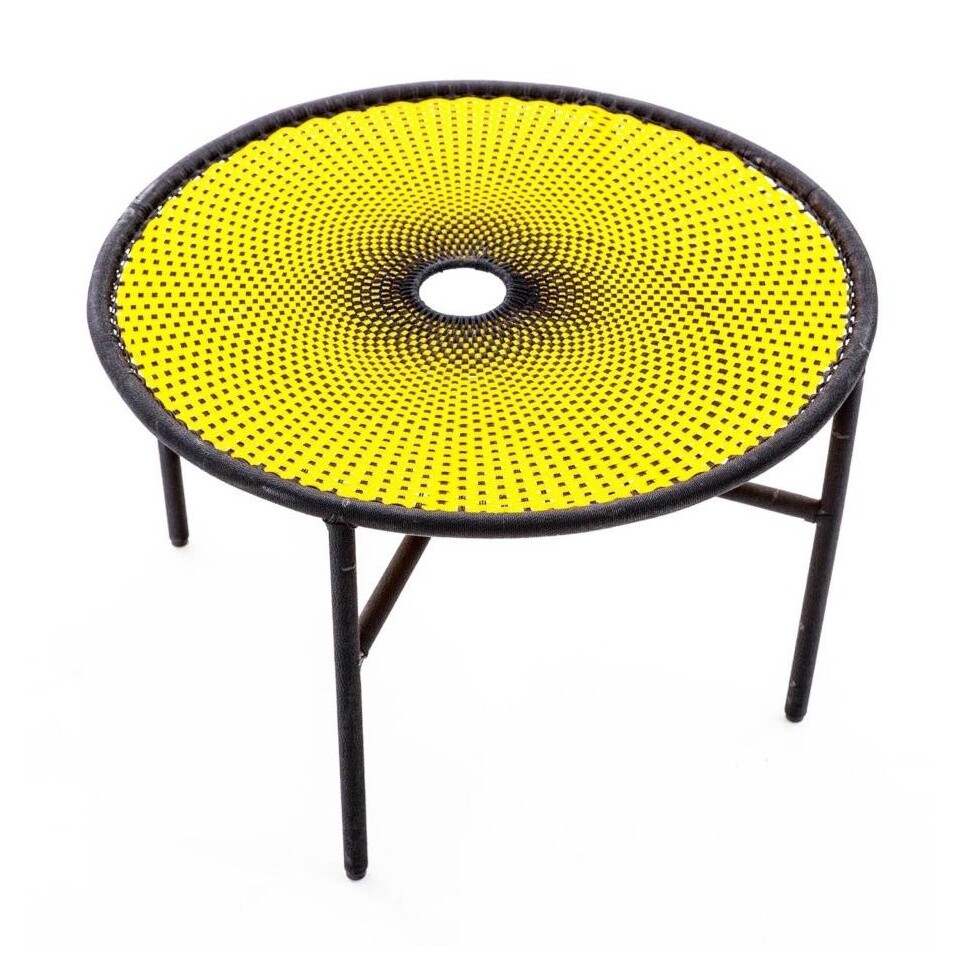 Ausführungen: Banjooli Tisch / schwarz/gelb/handgeflochten/Gestell Stahl lackiert/H x Ø 72x96cm