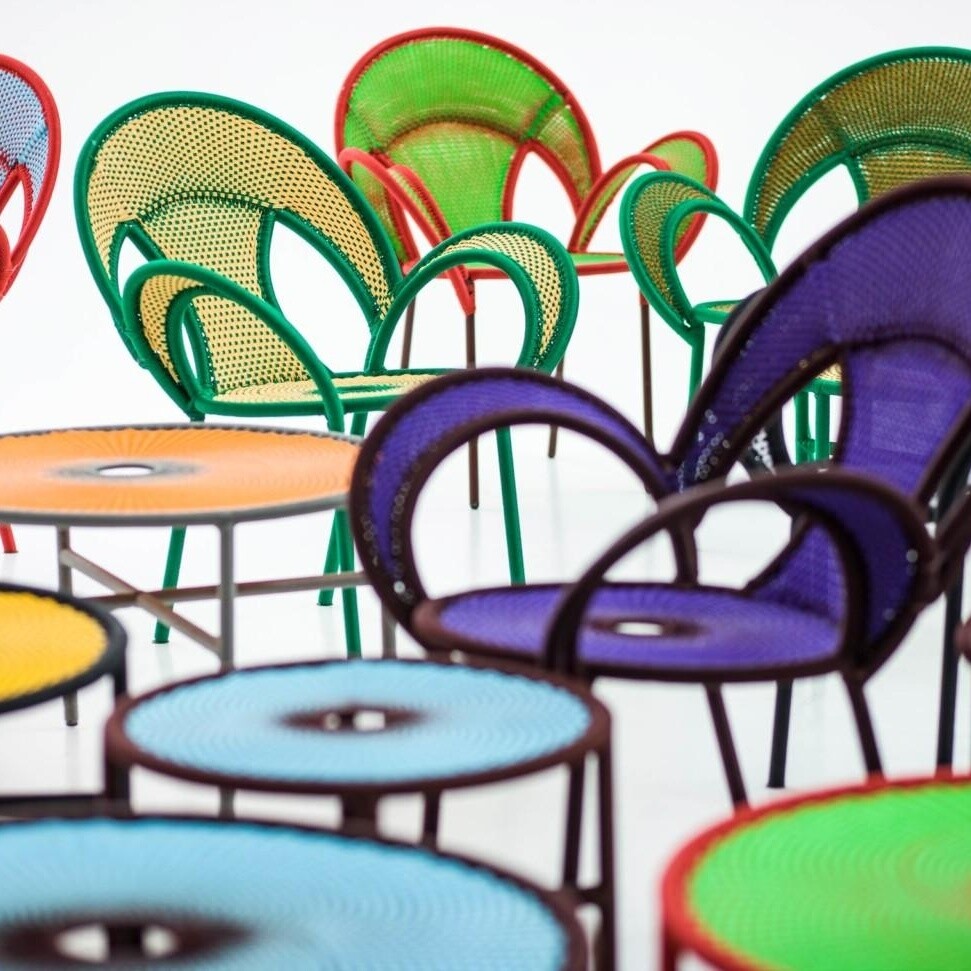 Der Banjooli Tisch ist ein Meisterwerk des italienischen Designhauses Moroso, entworfen von dem renommierten Designer Sebastian Herkner. Als Inspirationsquelle diente der faszinierende Balztanz der afrikanischen Straußenvögel, was sich in den leuchtenden Farben und dem hypnotischen Design des Tisches widerspiegelt. Jede Oberfläche aus glänzendem Angelgarn wurde in einer aufwendigen Handarbeit an der Küste Senegals geflochten, was die einzigartige Atmosphäre des afrikanischen Kontinents einfängt.