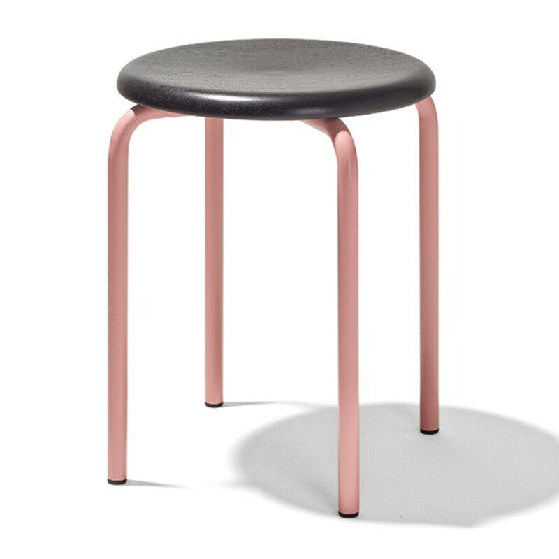 Ausführungen: Tom Hocker Sitzfläche Eiche schwarz / Eiche schwarz/offenporig lackiert/H 35cm/Ø 45cm/Gestell hellrosa RAL 3015