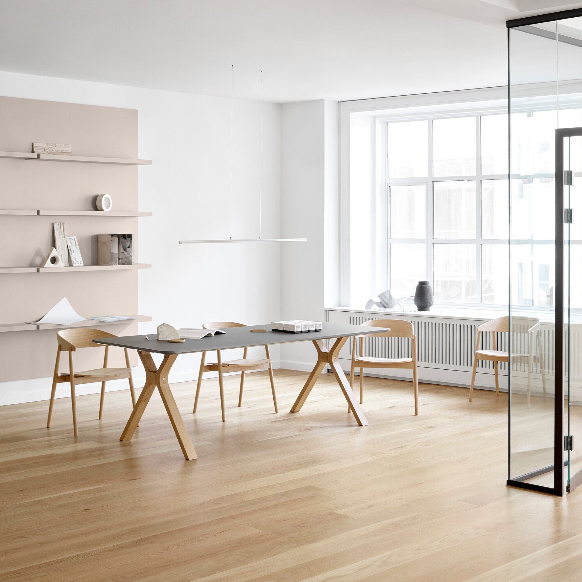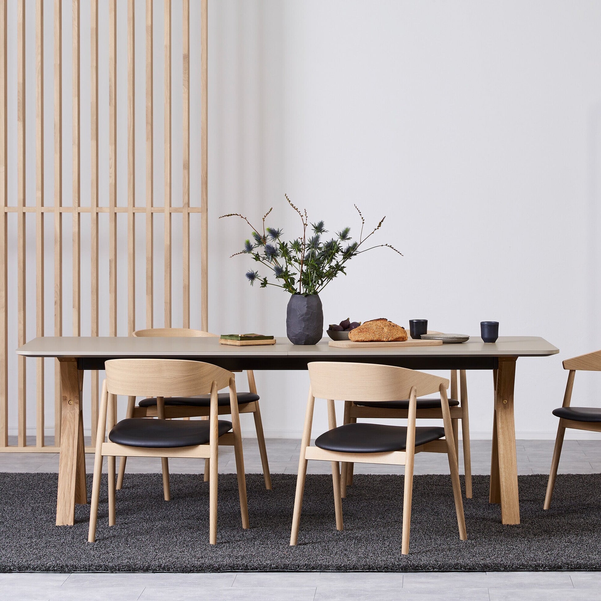 Der Space Esstisch ausziehbar mit Massivholzbeinen ist ein Meisterwerk des skandinavischen Designs, das vom renommierten Andersen Design Team für die Marke Andersen Furniture geschaffen wurde. Mit seinem eleganten X-Form-Gestell und den massiven Eichenholzbeinen, die aus tschechischer Herkunft stammen, strahlt dieser Tisch eine Atmosphäre von Eleganz und Exklusivität aus.