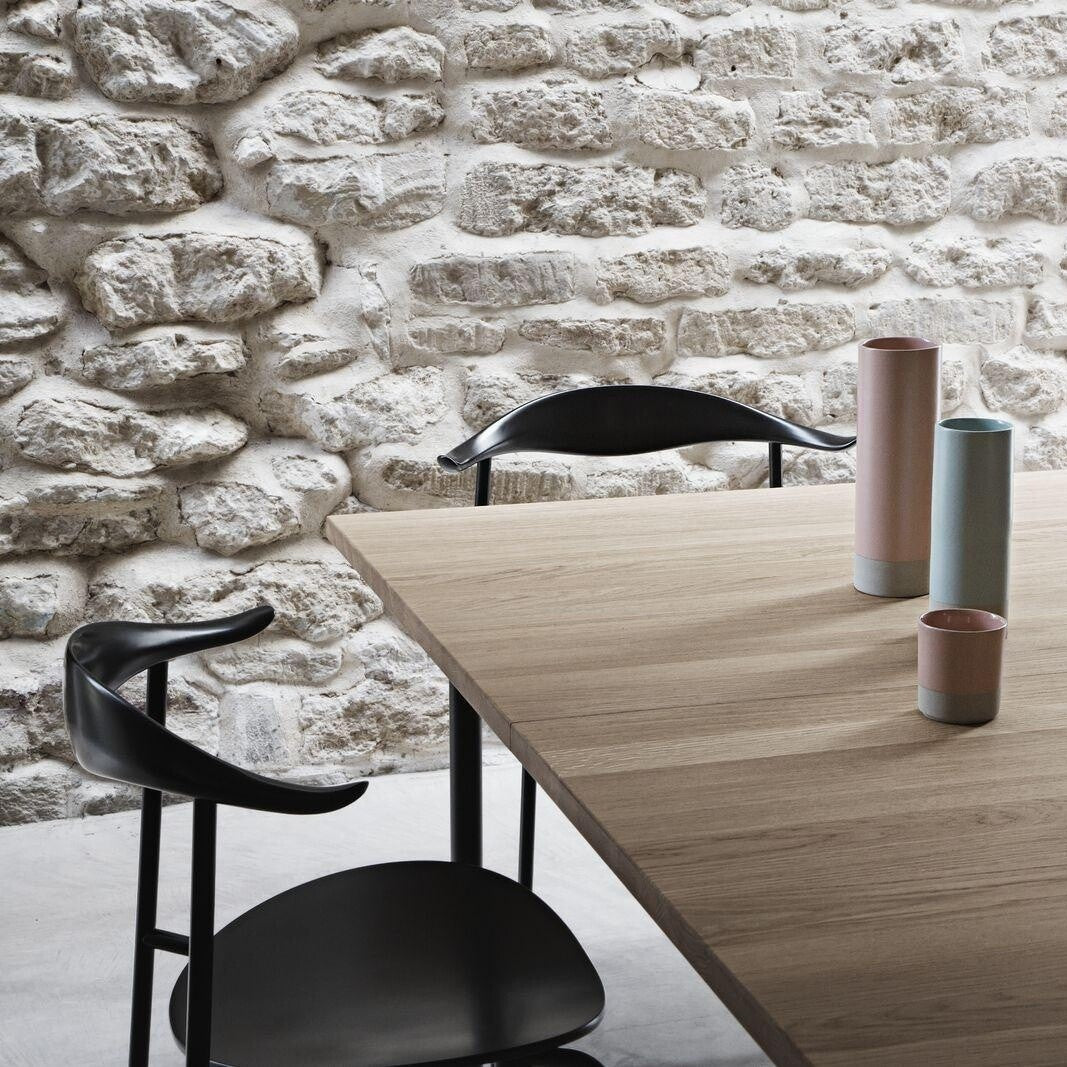 Heute präsentiert sich der Carl Hansen CH88T Stuhl in einer neuen Ausgabe, die anlässlich des 100. Geburtstags Wegners 2014 neu lanciert wurde. Die puristische Formensprache des pulverlackierten Stahlgestells passt perfekt in industriell angehauchte Lofts und minimalistisch gestaltete Gastronomieräumlichkeiten. Die fließend erscheinende Sitzfläche in ovaler Form und die dampfgebogene, horizontal angebrachte Rückenlehne mit den charakteristisch nach oben weisenden Enden, die Armlehnen andeuten, sind aus Massivholz gefertigt. Dieses Holz bildet einen aufregenden Gegensatz zum filigranen Gestell.