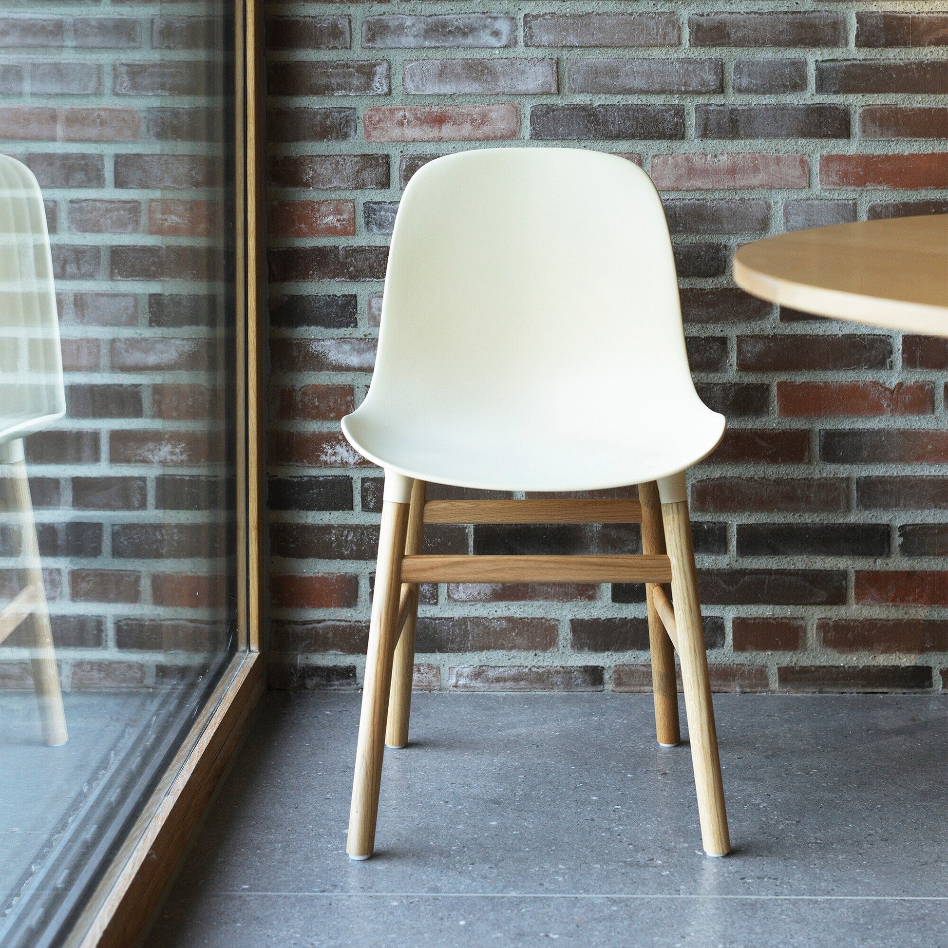 Der Form Stuhl Gestell Eiche ist ein Meisterwerk der minimalistischen Designkunst, das von dem renommierten Designer Simon Legald für den dänischen Hersteller Normann Copenhagen entworfen wurde. Mit diesem Stuhl gelingt es, Eleganz und Schlichtheit in perfekter Harmonie zu vereinen. Die nahtlose Übergangsform der Sitzfläche in die Beine ist ein auffälliger Gesichtspunkt, der die Visuelle Wahrnehmung des Stuhls sofort überzeugt. Bei genauerem Hinsehen wird deutlich, dass die Sitzfläche pro Bein eine spezielle Aufnahme aufweist, in die die Holzfüße einpassen. Die farbliche Abstimmung zwischen dem Stuhl, den Beinen und den schwarzen Füßchen, die jeden Boden schützen, rundet das Gesamtbild des Form Stuhls Gestell Eiche ab.