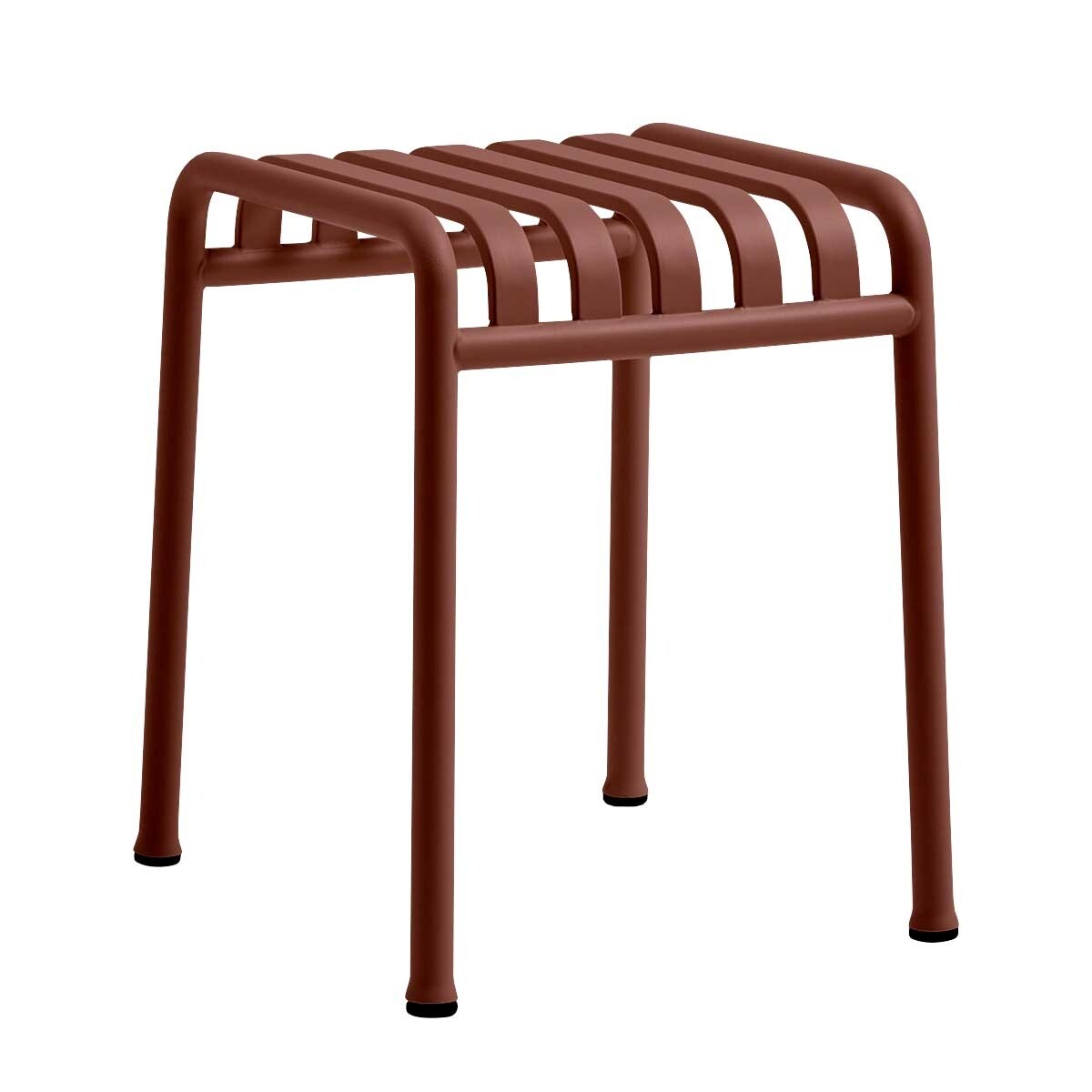 Die Verwendung von runden und eckigen Stahlrohren als Materialien schafft ein einzigartiges Design, das sowohl den Rahmen als auch die Sitzfläche des Hockers bildet. Durch die Zwischenräume der Lamellen kann Regenwasser ablaufen, während der robuste Stahl einen widerstandsfähigen und langlebigen Begleiter im Außenbereich verspricht. Das Streben-Muster des Hockers sorgt zudem für schöne Schatteneffekte, die bei Kombination mit anderen Möbeln aus der Palissade-Kollektion noch verstärkt werden.