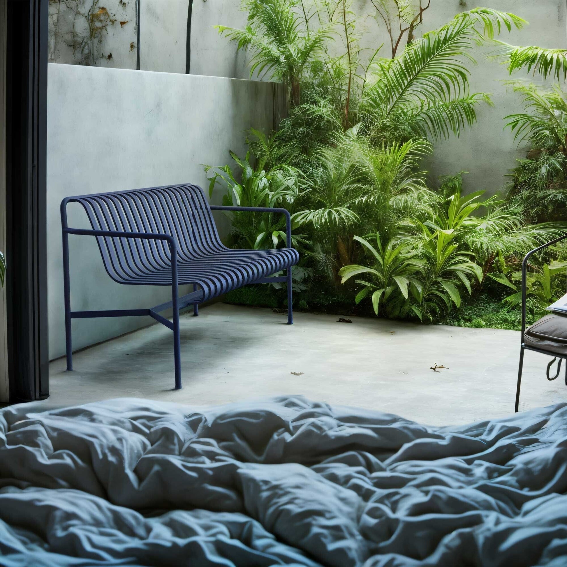 Ausführungen: Special Edition 2025 Palissade Dining Gartenbank / tiefblau/pulverbeschichtet/BxHxT 128x80x70cm