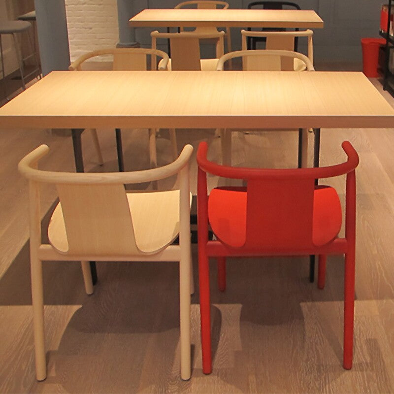 Der Stuhl ist in verschiedenen Ausführungen erhältlich, darunter verschiedene Holzarten und Oberflächen. Das Stuhlgestell besteht aus Massivholz, während der Sitz aus Holz, Linoleum oder auf Anfrage auch mit Lederpolsterung erhältlich ist. Die Bac-Kollektion umfasst neben diesem Stuhl auch einen passenden runden oder rechteckigen Tisch, der sich perfekt mit diesem Stuhl verbindet.
