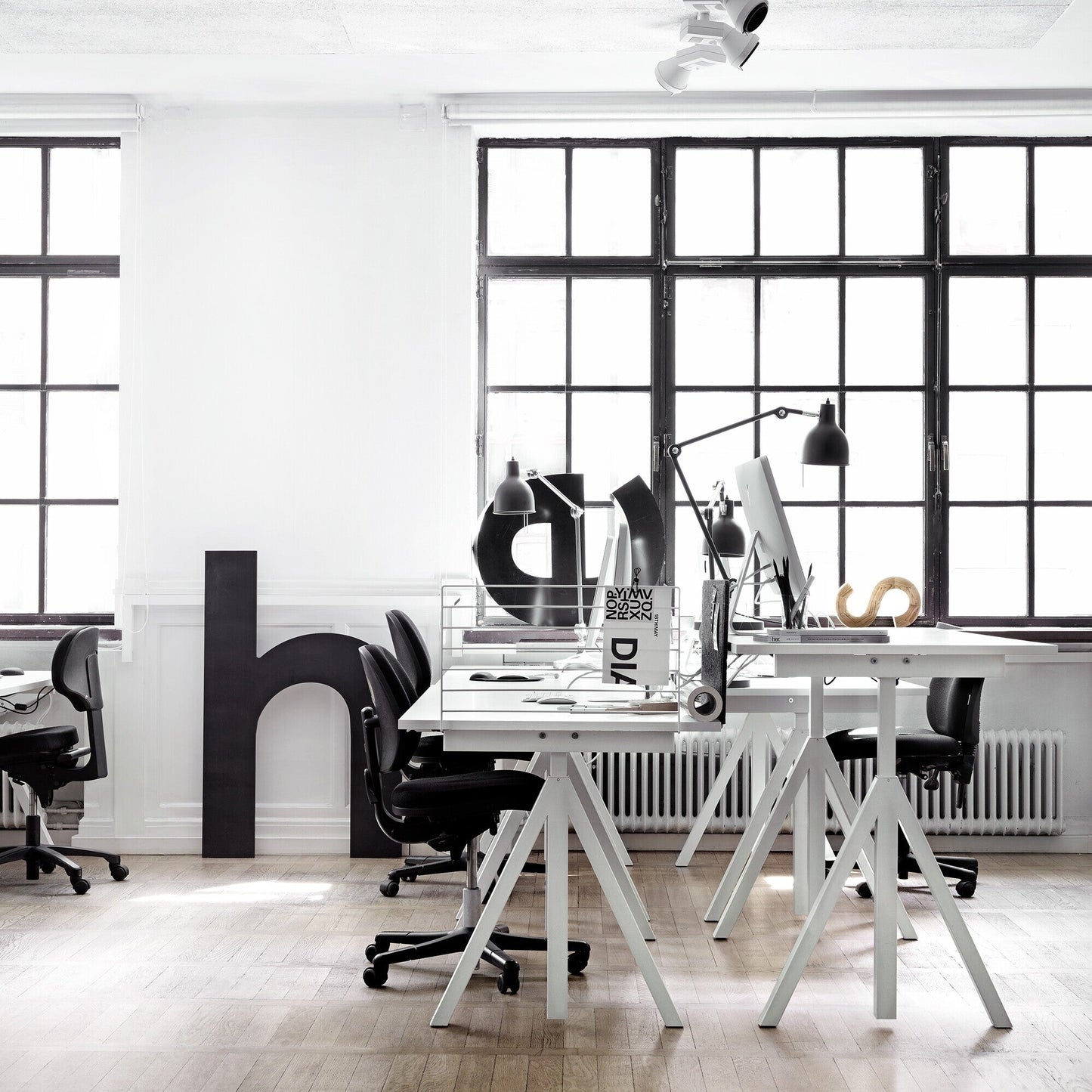 Der String Works Schreibtisch ist ein atemberaubendes Beispiel für die Perfektion von Form und Funktion. Entworfen von Nisse Strinning für die Marke String, dieses Stück moderner Möbelkunst verbindet elegante Einfachheit mit höchster Qualität.