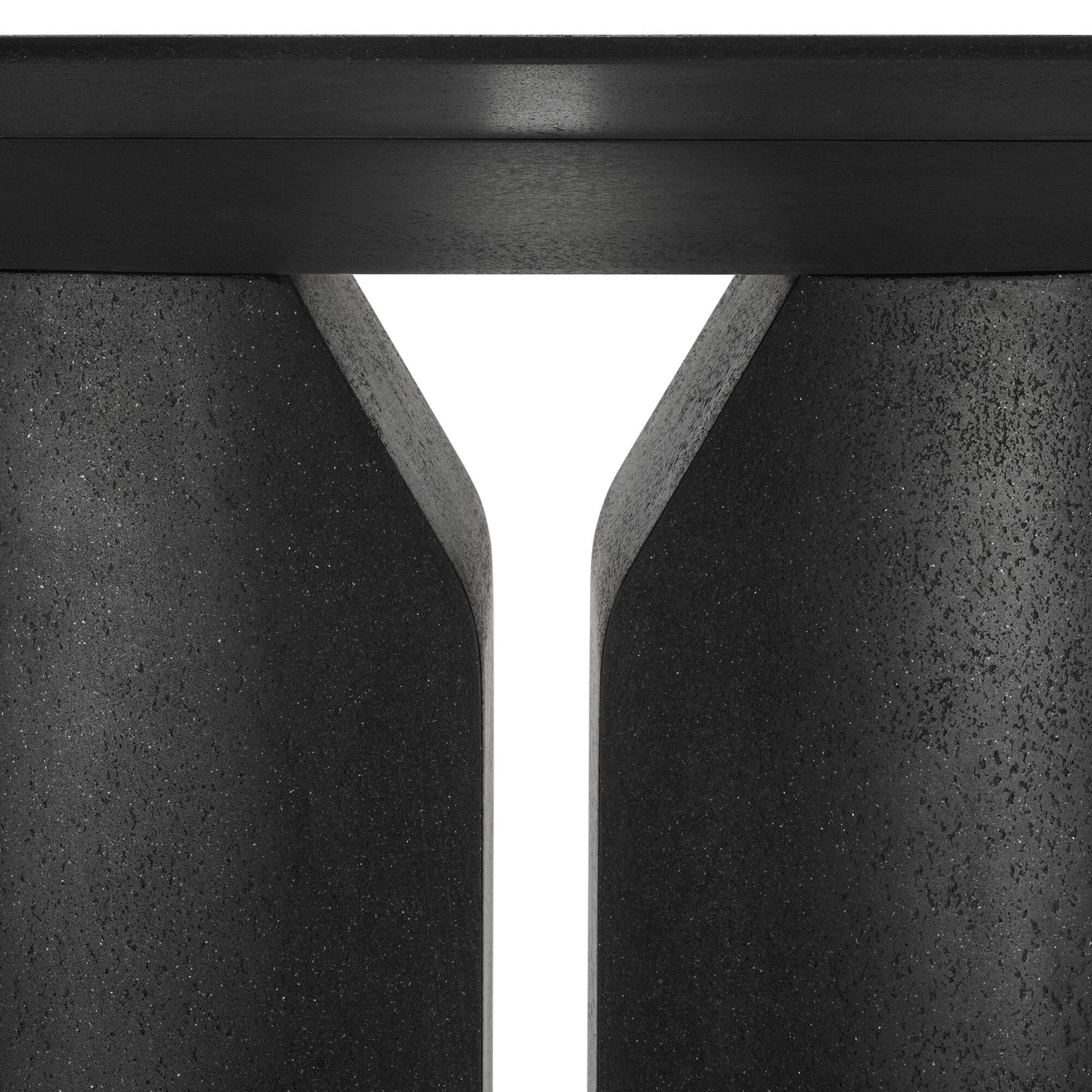 Der NVL Esstisch oval 120x200cm zeugt von Nouvel's Faszination für monolithische Linien, die den Tisch nach außen hin wie ein einziges Material erscheinen lassen. Tatsächlich verbirgt sich in diesem Design ein Innengewicht aus Gusseisen, das von einer nach außen hin sichtbaren Schicht aus Hartpolyurethan überzogen ist. Diese Verbindung erinnert an einen Trilith, einen historischen Bauelement, der aus zwei vertikalen Trägern und einem Deckstein besteht. Durch die lose Verbindung zwischen den Trägern scheint die Platte fast so zu schweben, als ob sie in der Luft hänge.