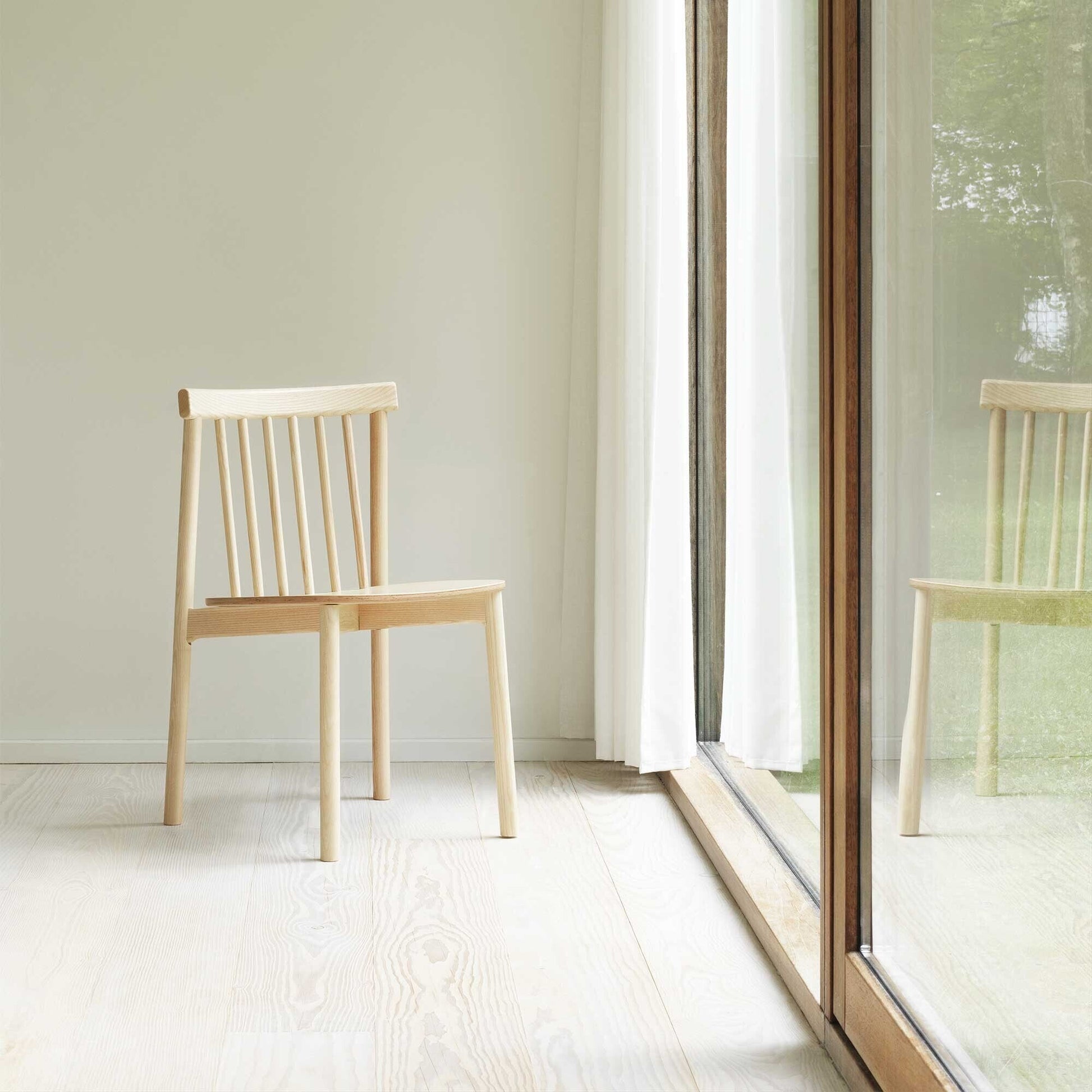 Der Pind Stuhl ist ein echtes Highlight für jeden, der Wert auf hochwertige Materialien legt. Er besteht aus hochwertigem Eschenholz mit lackierter Oberfläche und zeigt eine langlebige Robustheit. Der Sitz ist aus Eschenfurnier gefertigt und zeigt eine attraktive Maserung.