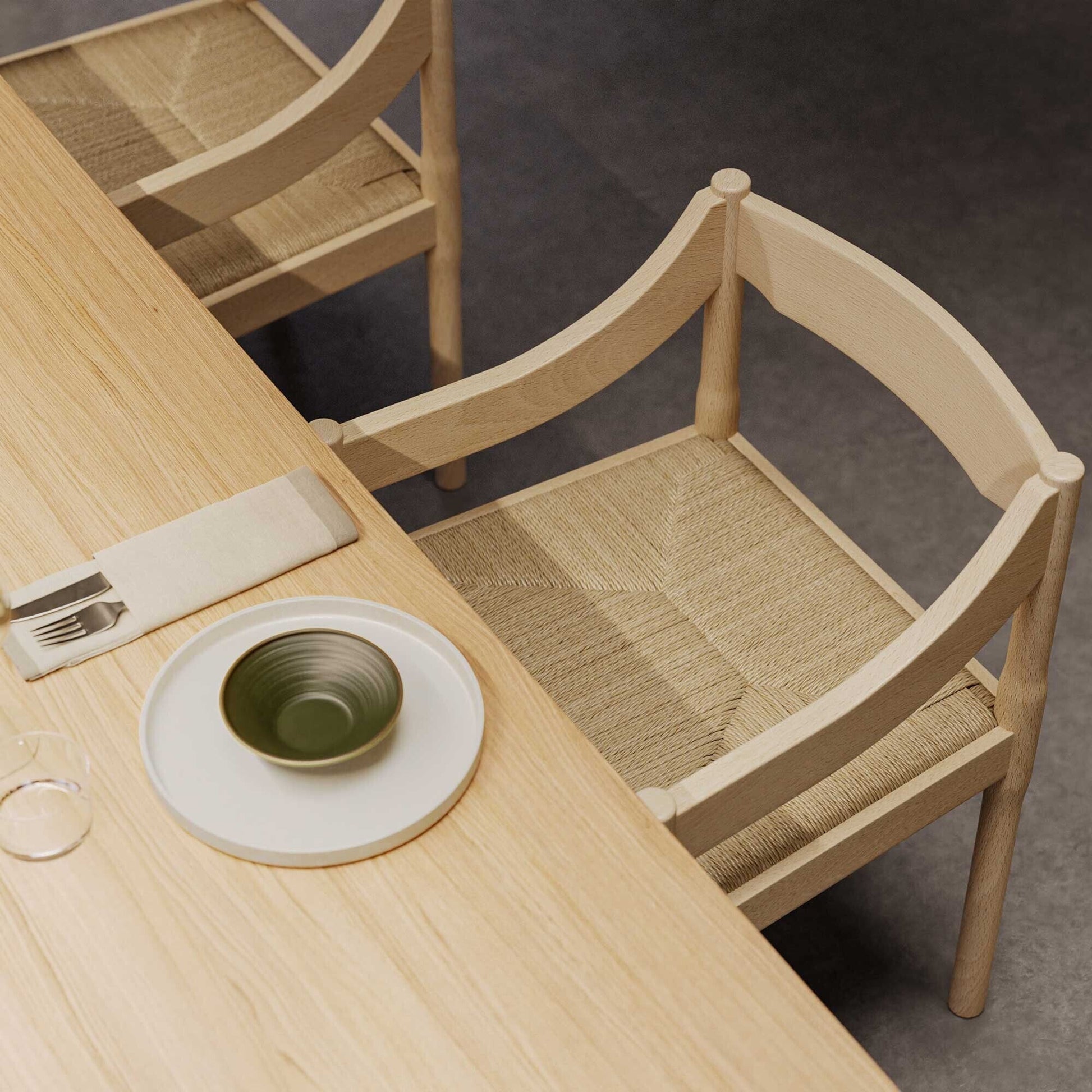 Der Carimate Armlehnstuhl Buche ist ein echtes Designstück, das durch seine Materialität und Herkunft geprägt ist. Er wird aus FSC-zertifiziertem Buchenholz gefertigt und zeigt mit seiner mit Papierkordel umspannten Sitzfläche einen freundlichen Charme. Dieser Stuhl passt perfekt in den modernen Wohnraum, aber auch in ein klassisch gestaltetes Repräsentativzimmer. Er findet seinen Platz in einer Galerie, einer Boutique, in der Lounge eines Hotels oder am Esstisch daheim.