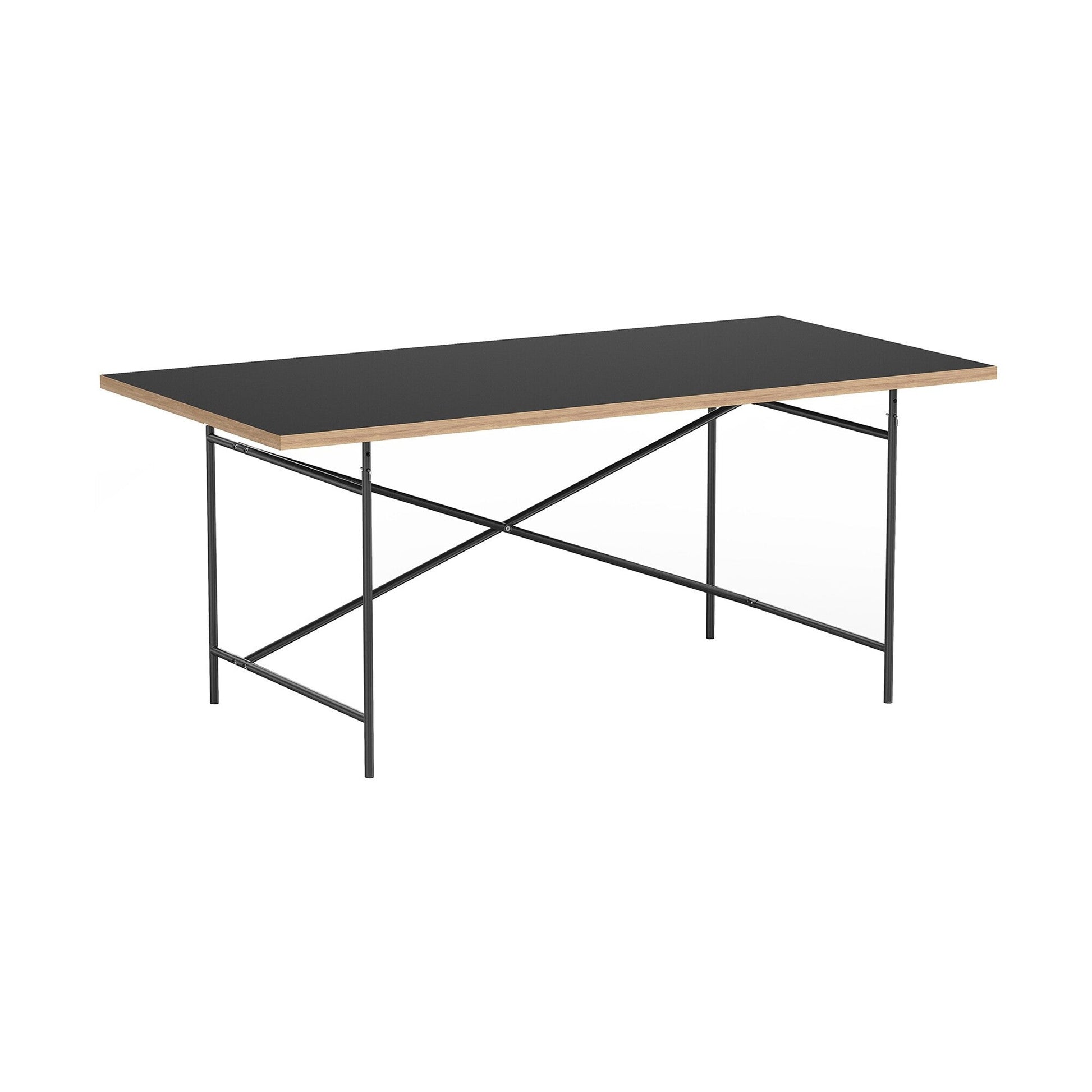 Ausführungen: Eiermann 2 Tisch 160x80x66cm Gestell exzentrisch 135x78cm / schwarz/Tischplatte Linoleum mit Eichenkante/Gestell schwarz RAL 9005 pulverbeschichtet