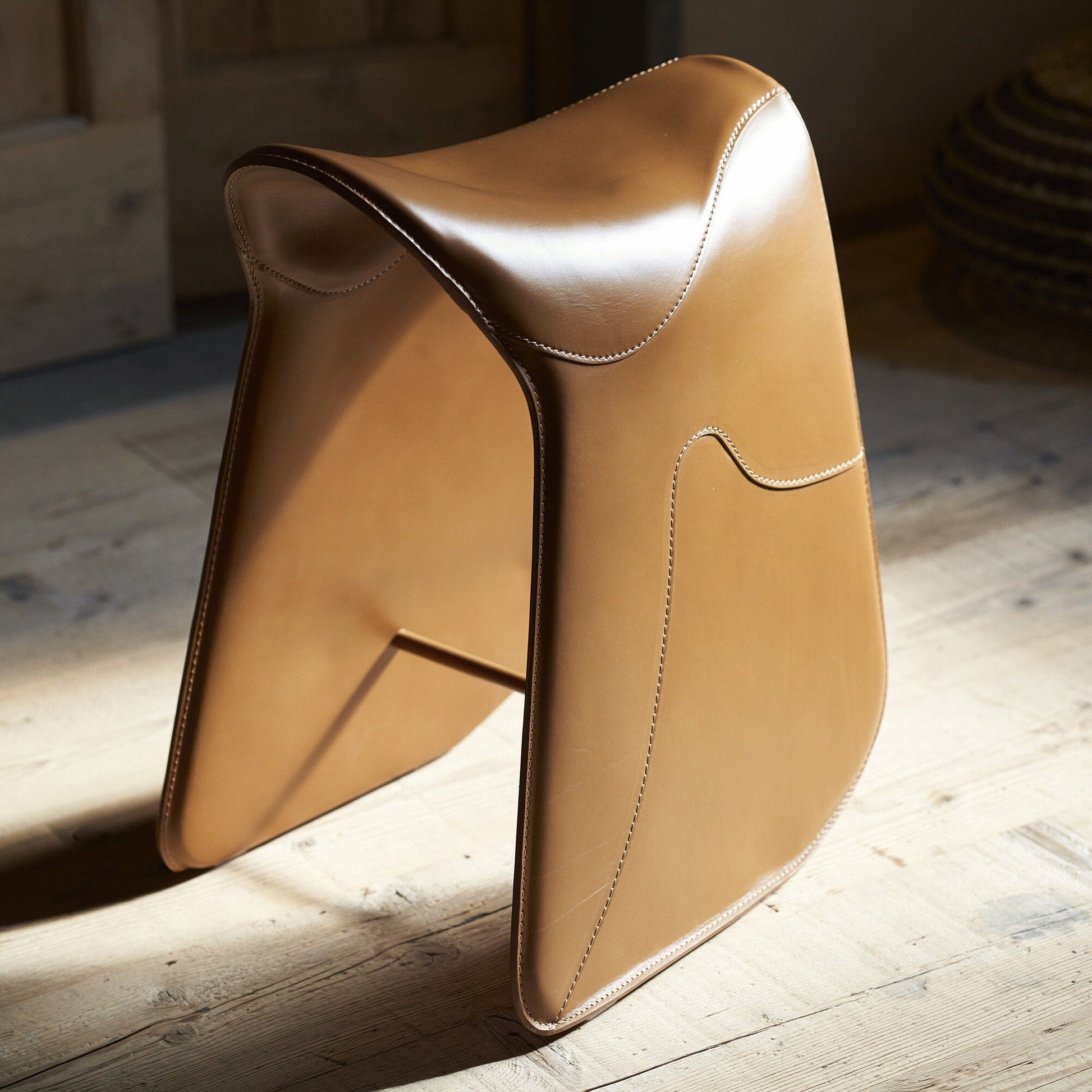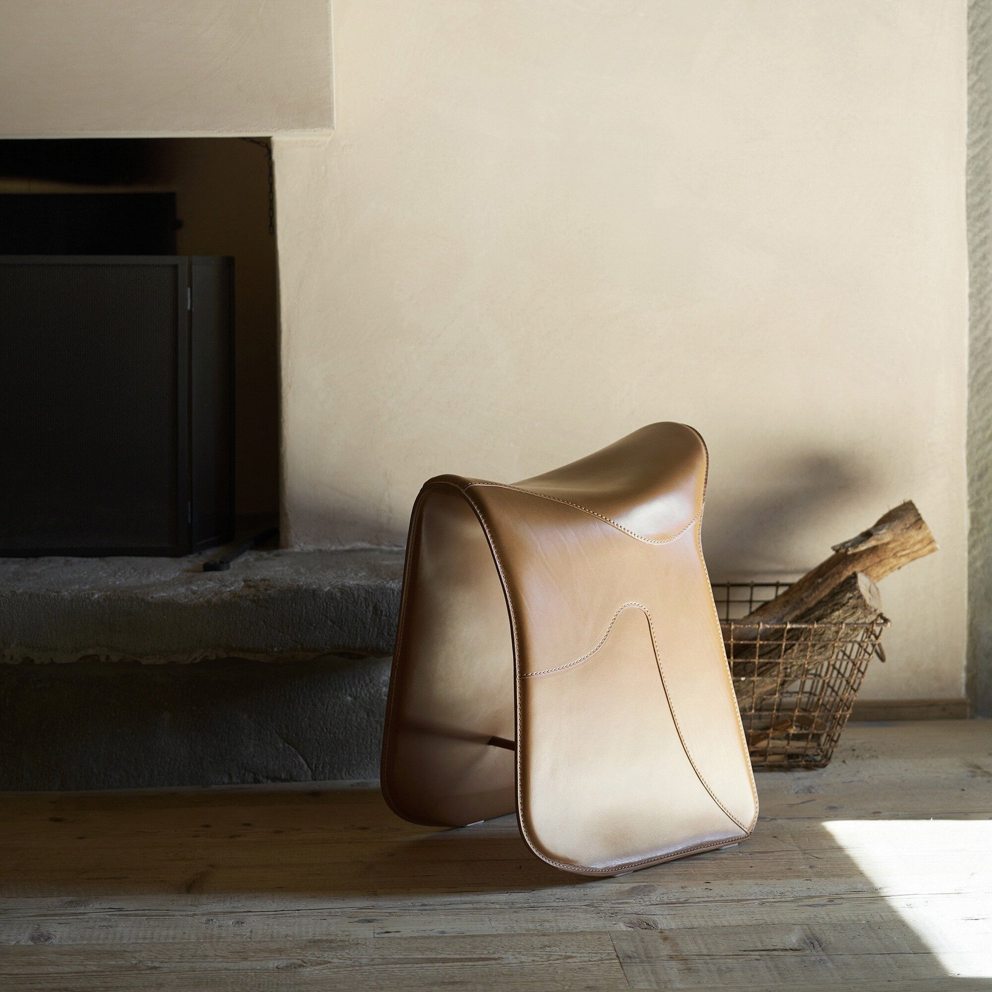 Das Gestell des Pepe Hockers ist mit pflanzlich gegerbtem Anilinleder überzogen, das in Handarbeit genäht wurde. Durch den speziellen und hochwertigen Gerbprozess bleibt die natürliche Narbenbildung des Leders erhalten, was jedes Hocker ein Unikat macht. Die kleinere Unvollkommenheiten sind ein Zeichen der Qualität des Leders.