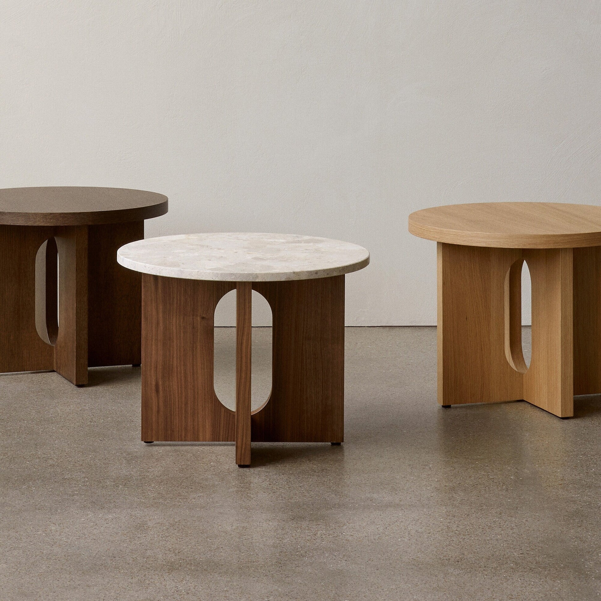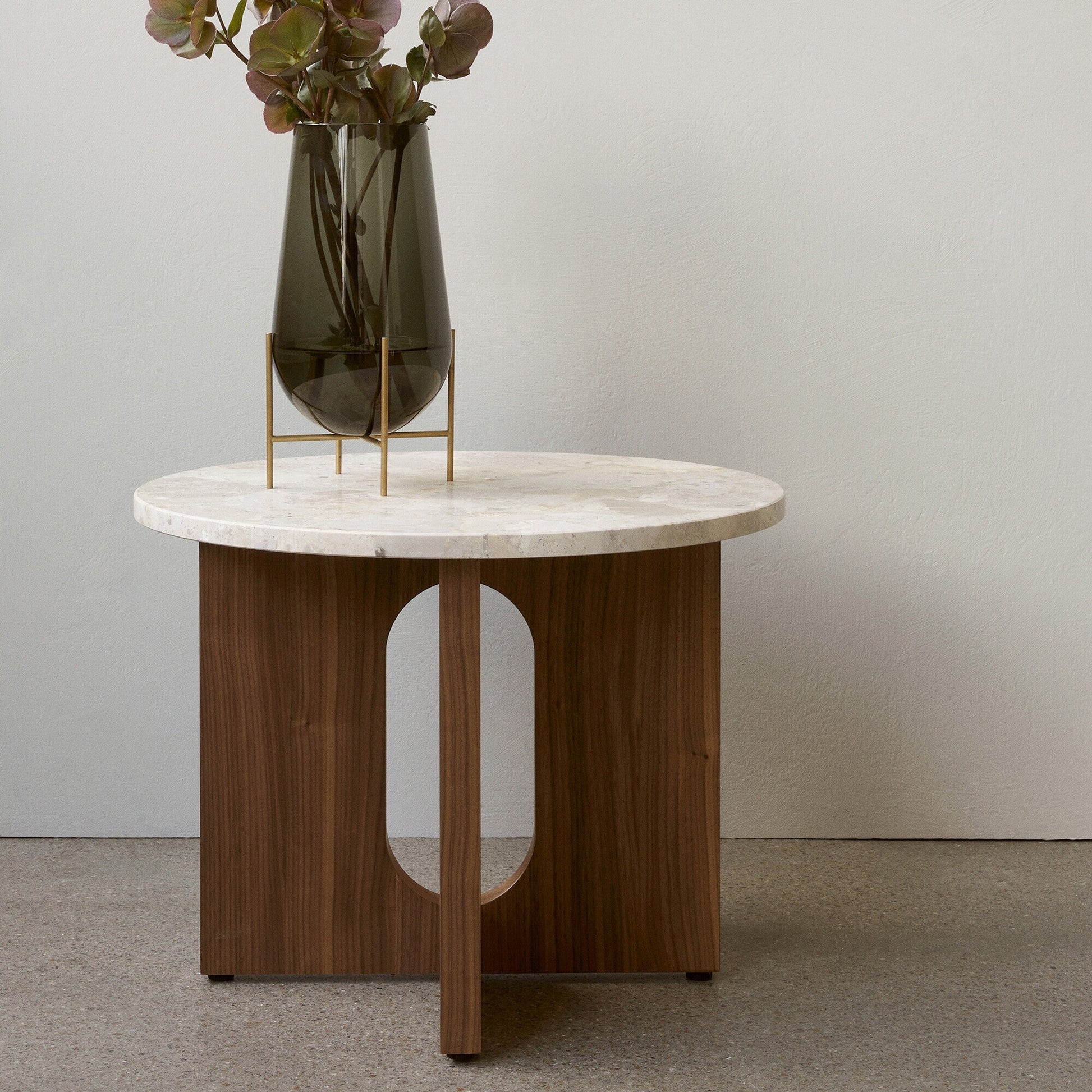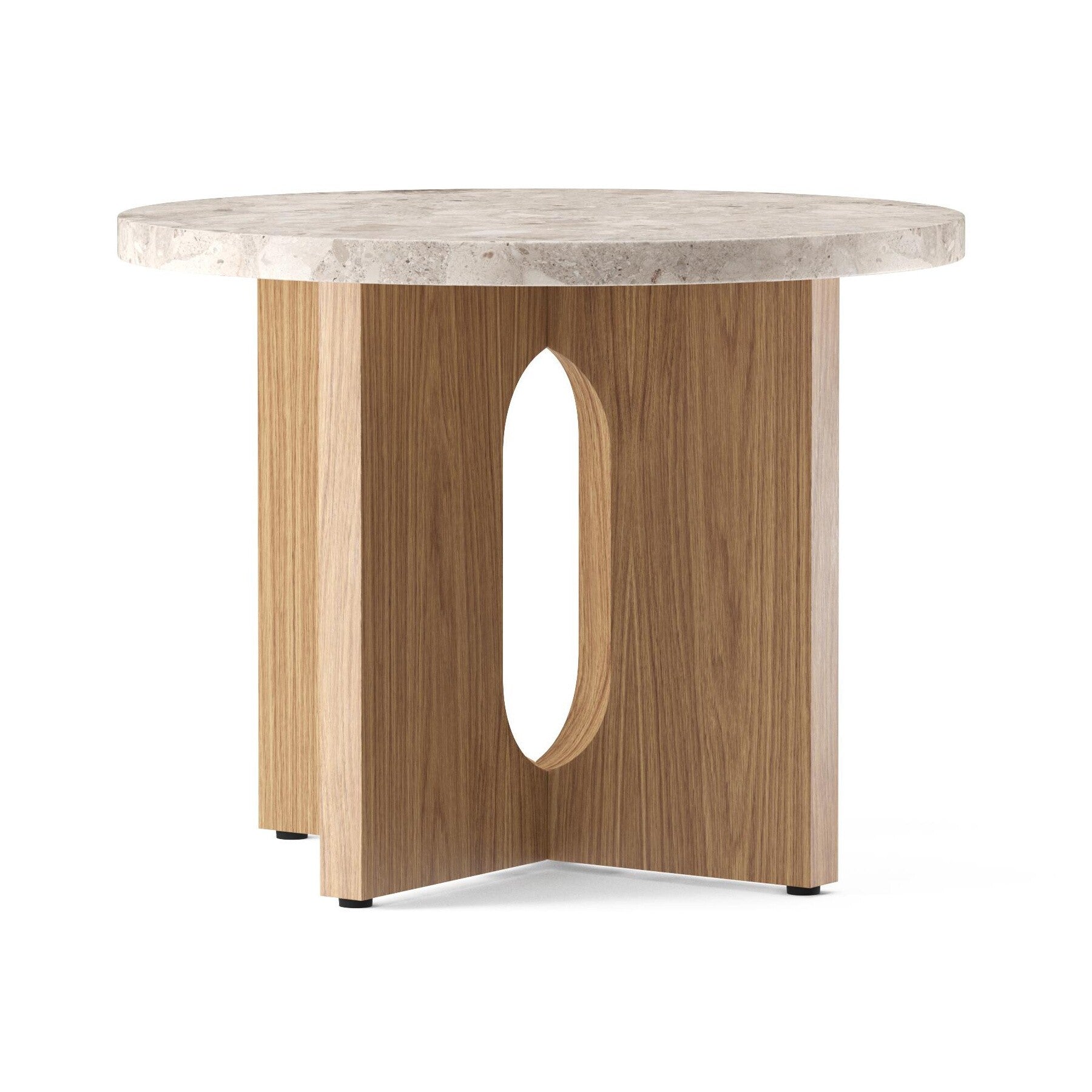 Ausführungen: Androgyne Beistelltisch Marmor Ø50cm / sand/Kunis Breccia/BxH 35.5x39.5cm/Gestell Eiche natur