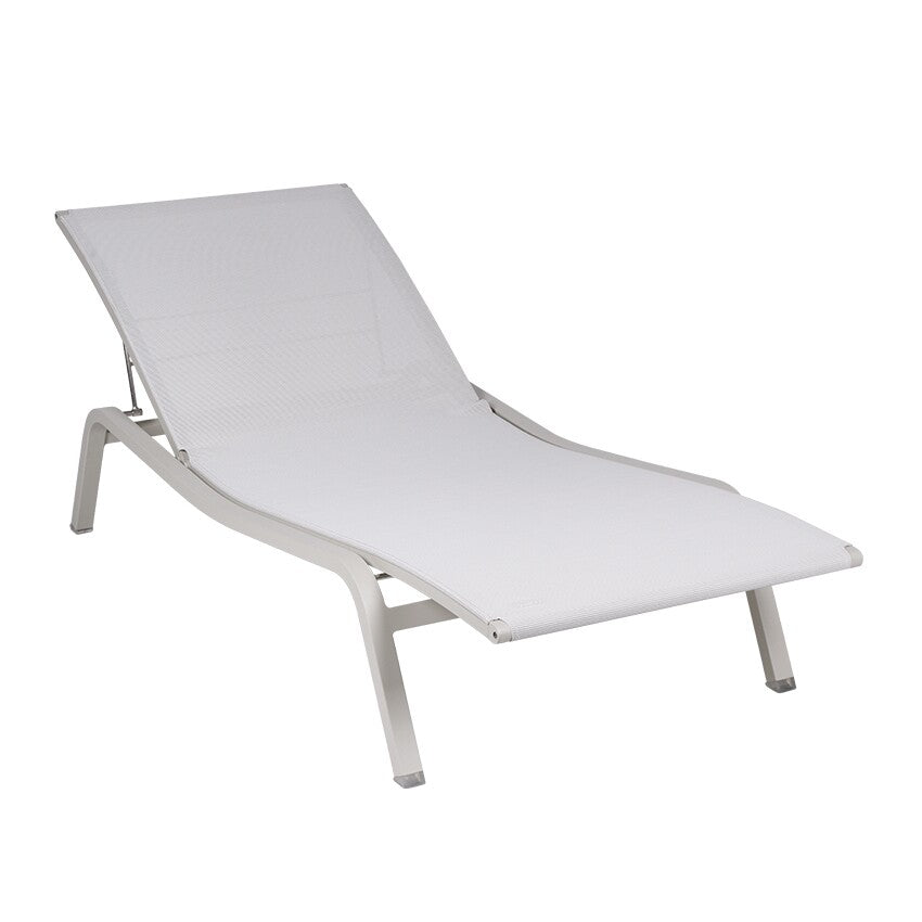 Die Alizé Sonnenliege ist in verschiedenen Farbversionen erhältlich und kann auf Anfrage auch in anderen Fermob-Farben oder als Alizé Gartensessel bestellt werden. Eine perfekte Entspannungserfahrung ergibt die Kombination mit dem Alizé Beistelltisch.