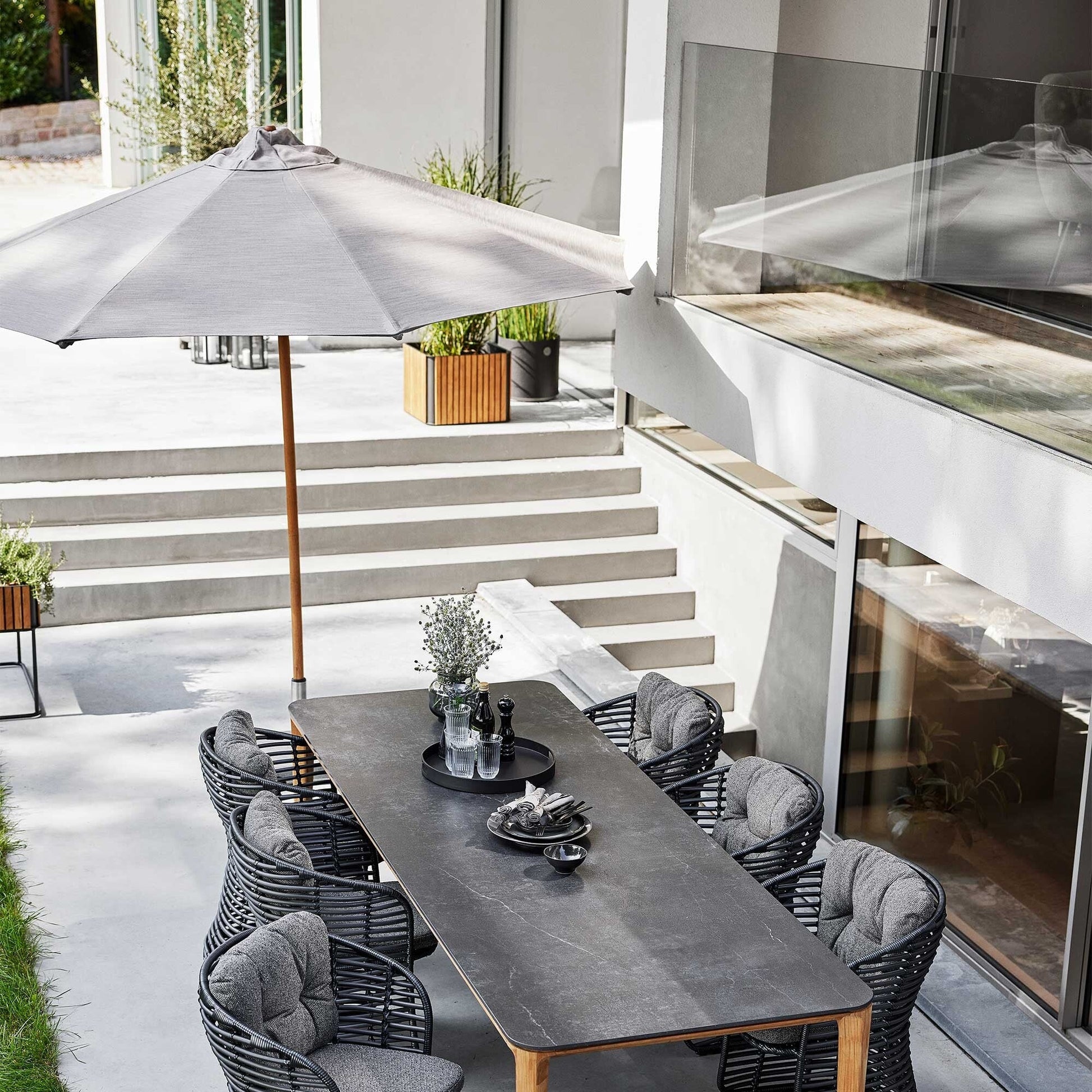 Der exklusive Classic Sonnenschirm von Cane-Line ist ein Meisterwerk der Handwerkskunst, perfekt für diejenigen, die nach einem Stück einzigartiger Eleganz suchen. Mit seinem eleganten Seilzug und einer Durchmesser von 300cm bietet dieser Sonnenschirm nicht nur Schatten, sondern auch eine visuelle Bereicherung für jeden Raum. Der klassische Entwurf ist perfekt für die Verwendung in Garten, Terrasse oder Poolbereich.