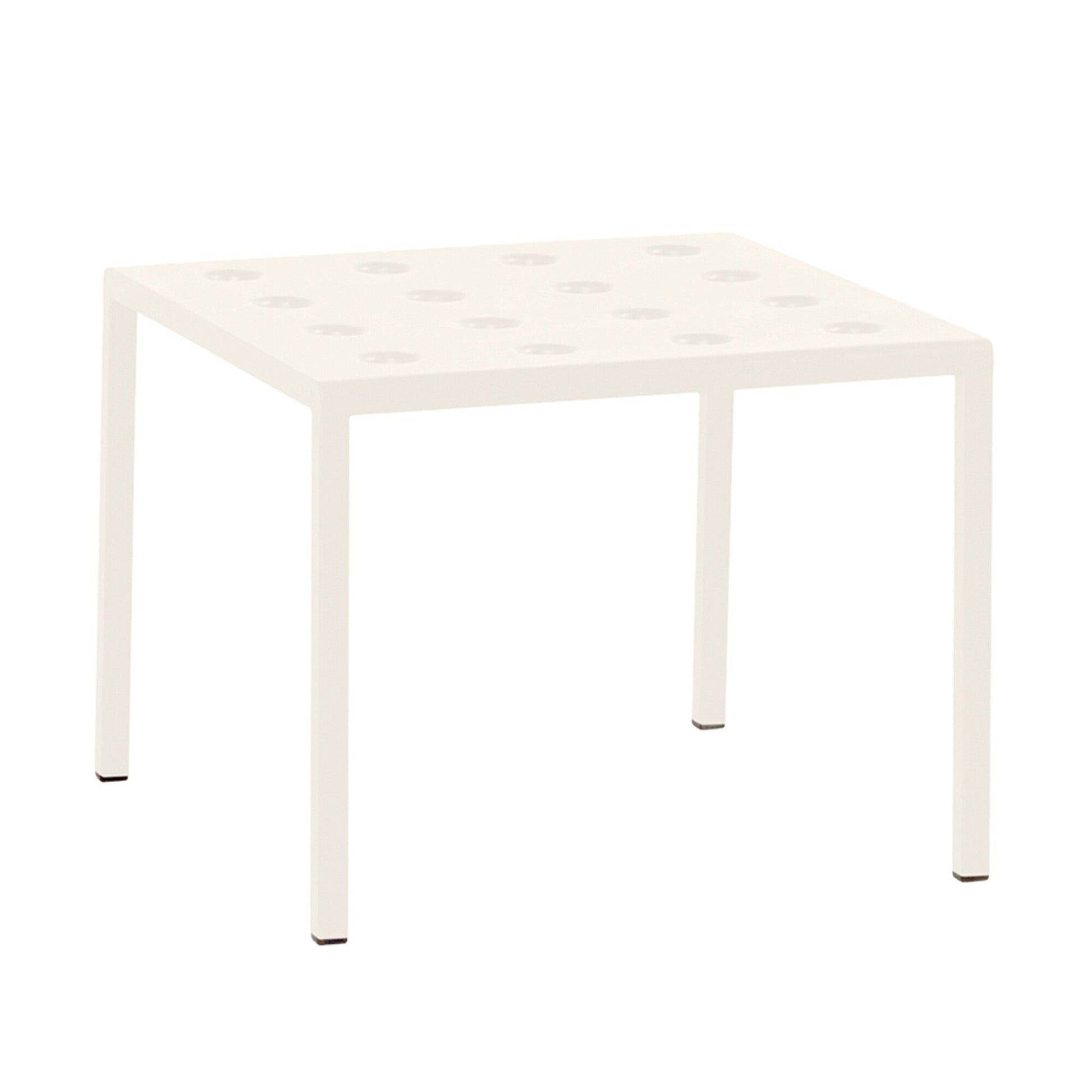 Die Balcony-Kollektion, vorgestellt im Jahr 2022, zeichnet sich durch ihren schlichten und eleganten Entwurf aus, der von den Löchern in den Tischplatten geprägt ist. Diese spezielle Konstruktion ermöglicht es, Nässe sofort abzuführen, sodass der Balcony Garten Beistelltisch 50x51,5x38,5cm nach einem Regenguss rasch wieder einsetzbar ist. Die Verwendung pulverbeschichteten Stahls, der mit einer speziellen Grundierung beschichtet ist, garantiert die Beständigkeit des Möbelstücks gegen Wind und Wetter. Vier Beine sichern dem Tisch einen sicheren Stand, während an der Unterseite Plastikgleiter montiert sind. Der Balcony Garten Beistelltisch 50x51,5x38,5cm ist in verschiedenen Farben erhältlich.
