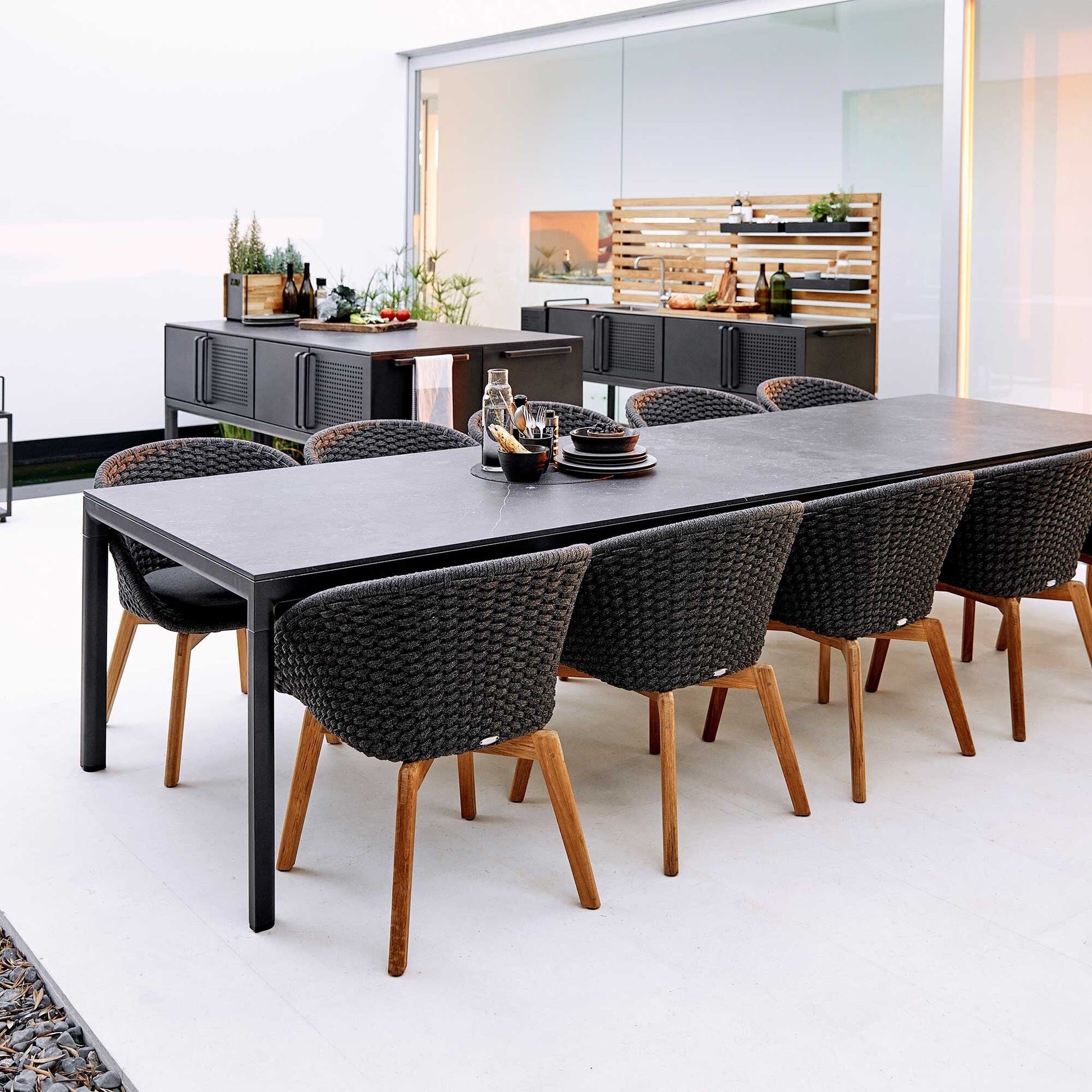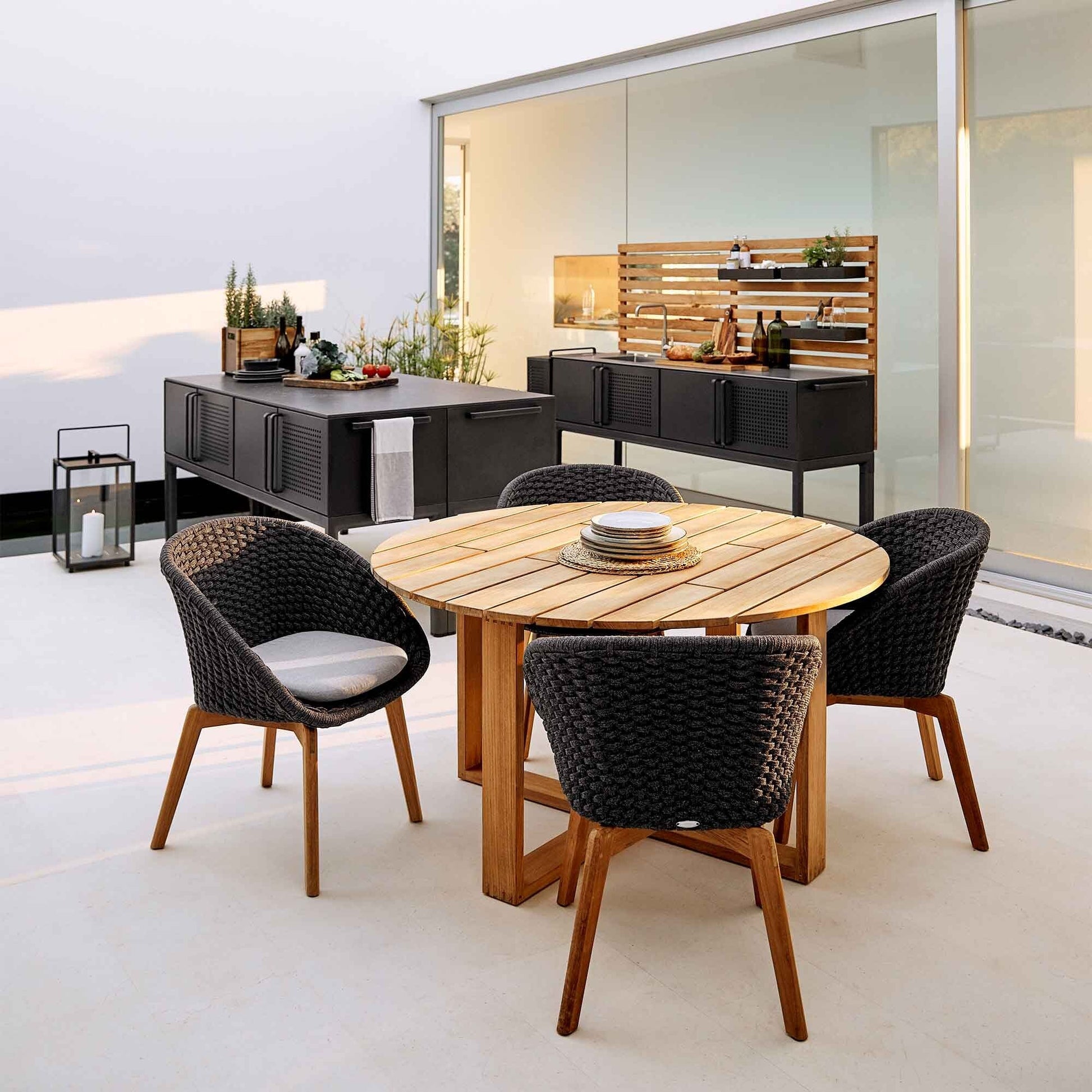 Ausführungen: Peacock Gartenarmlehnstuhl / dunkelgrau/Sitzschale Cane-line Soft Rope/Gestell Teak/BxHxT 61x81x61cm