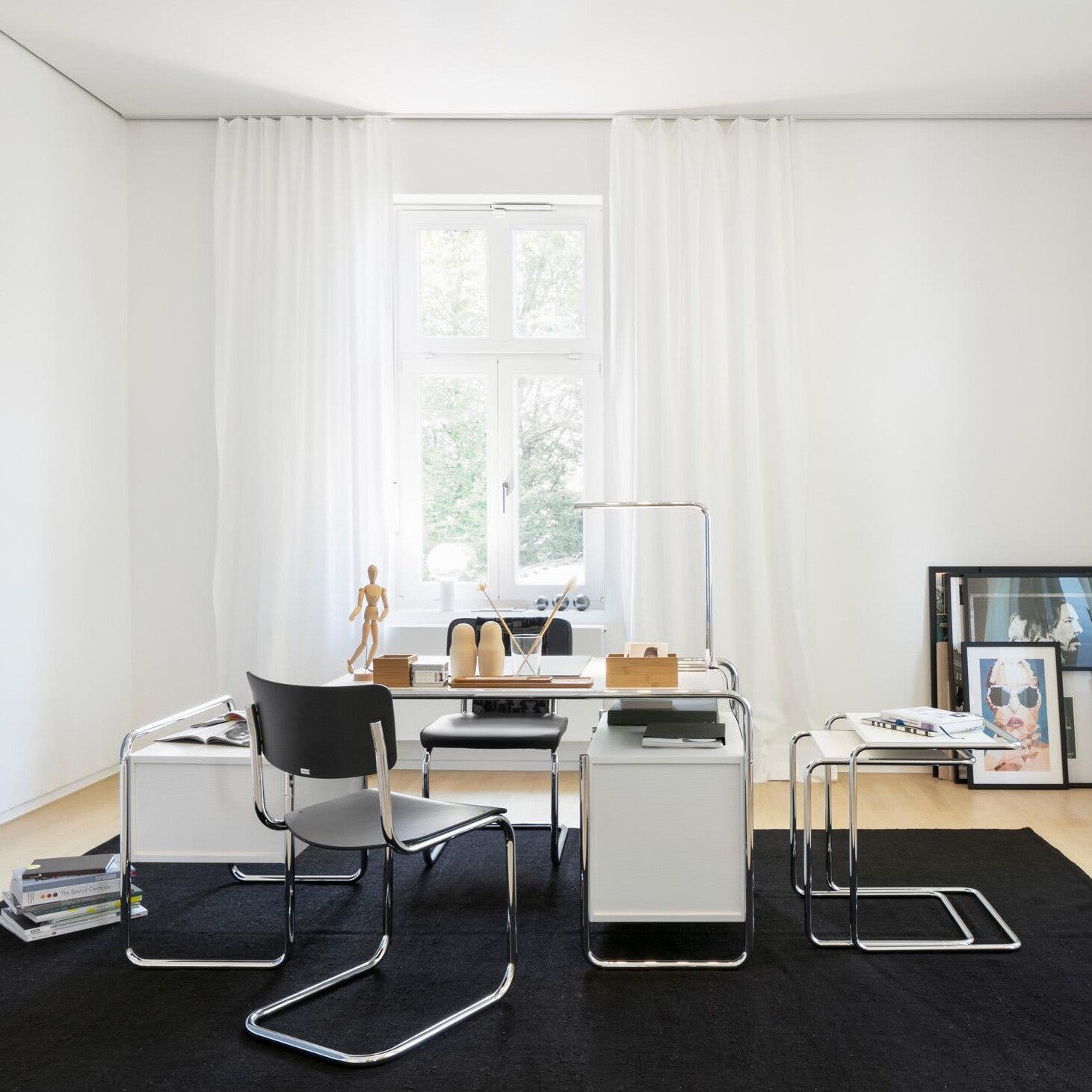 Der B 97 Beistelltisch 2er Set Esche ist ein Meisterwerk der Designkunst, das vom Thonet-Designerteam für die Marke Thonet geschaffen wurde. Die Inspiration für dieses Stück kam von Marcel Breuer, der sich von dem Lenker seines Fahrrades leiten ließ und so 1933 das Modell B 97 entwarf, nachdem er bereits das Klassiker B 9 geschaffen hatte.
