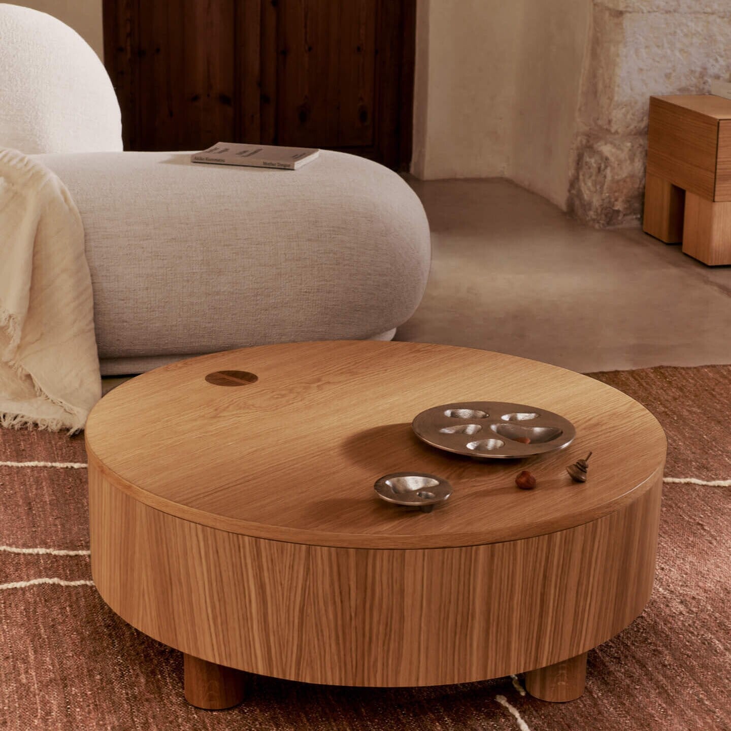 Ausführungen: Olles Beistelltisch mit Stauraum / eiche natur/natur/HxØ 30x80cm