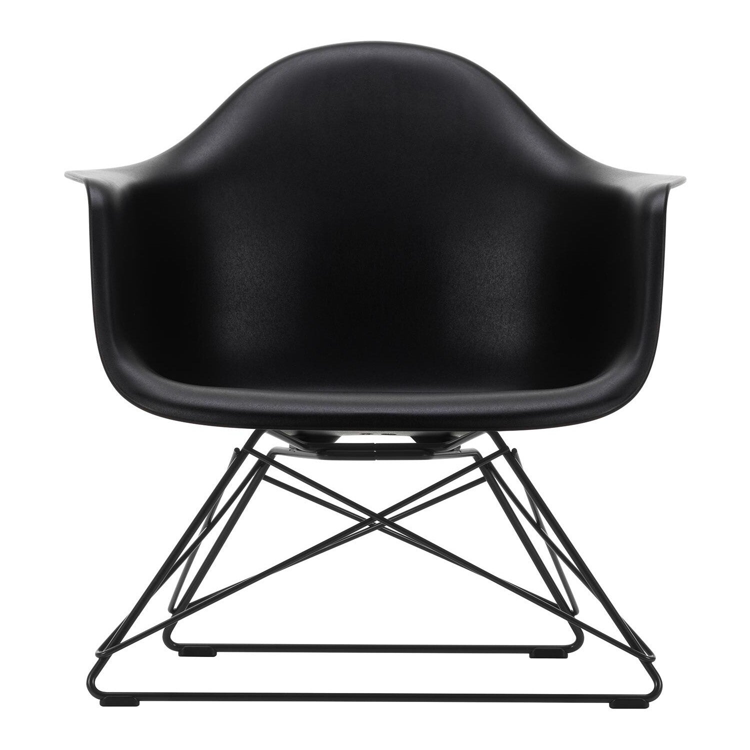 Ausführungen: Eames Plastic Armchair LAR RE Gestell schwarz / tiefschwarz/Sitzschale recycelter Post Consumer Kunststoff/Gestell Stahl schwarz pulverbeschichet/ Filzgleiter schwarz/BxHxT 62,5x63x61cm