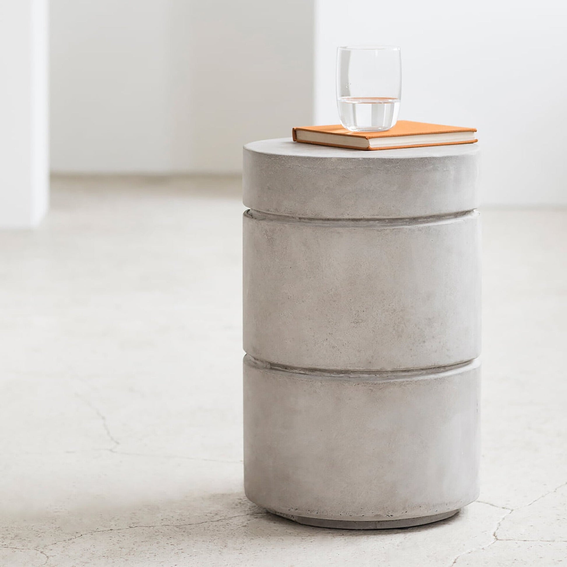 Die einfache, zylinderförmige Form in Kombination mit dem glatt geschliffenen grauen Beton verleihen dem Pawn Beistelltisch Ø 30cm eine skulpturale Ästhetik, die ihn von einem kompakteren Block zu einem einzigartigen Objekt macht. Die rund umlaufenden Einkerbungen ergeben das Erscheinungsbild eines Tisches, der aus drei Teilen zusammengesetzt wirkt. Jedes Stück ist von Hand gefertigt, wodurch Unregelmäßigkeiten in Farbe und Struktur auftreten können. Diese kleinen Unvollkommenheiten machen jeden Beistelltisch zu einem besonderen Einzelstück und bilden die handwerkliche Arbeit im Produktionsprozess ab.