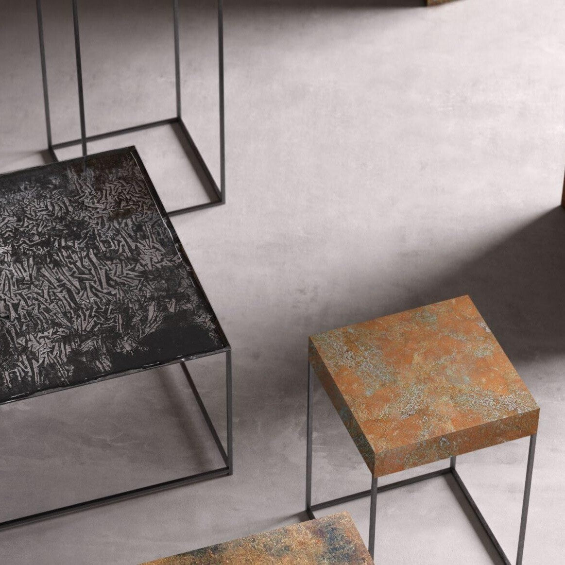 Ausführungen: Slim Up Beistelltisch 41x41x46cm / kupferschwarz Sandeffekt/Gestell kupferschwarz Sandeffekt/epoxylackiert/Jedes Teil ist ein Unikat!