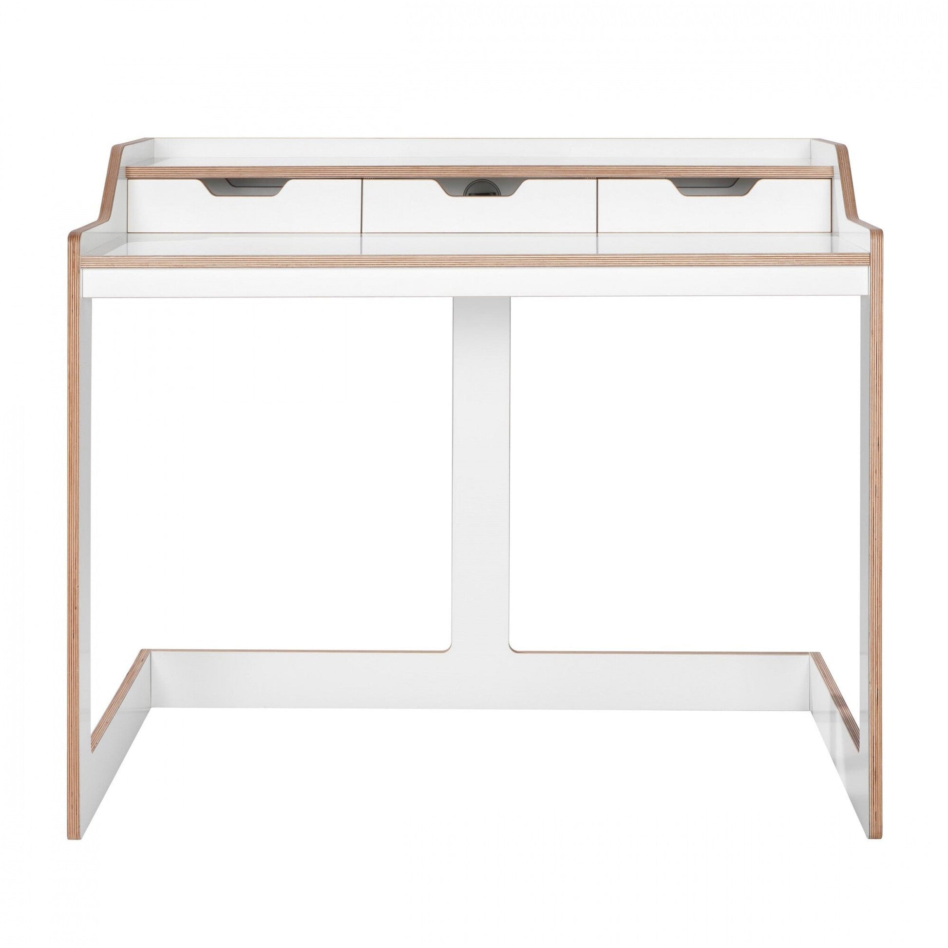 Der Plane Sekretär zeichnet sich durch seine Ästhetik aus, die ihn leicht in skandinavische und moderne Interieurs integrieren lässt. Die hinteren Tischbeine bieten einen nahezu unsichtbaren Verlauf für Kabel, während die Stecker in einem kleinen Fach zwischen den Schubkästen versteckt sind. Die Front des Fachs ist durch eine Magnethalterung fixiert, was die Eleganz des Möbelstücks unterstreicht.