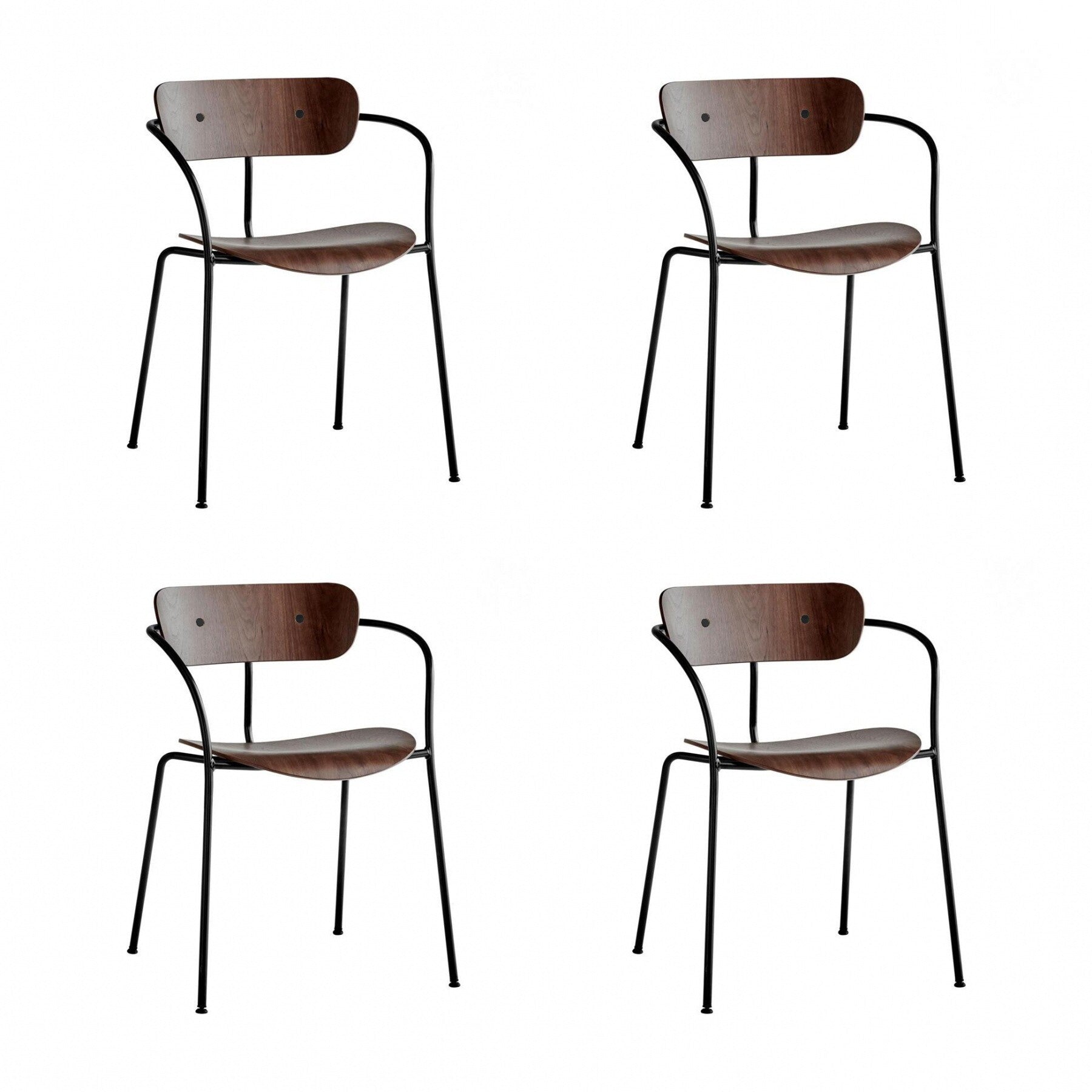 Ausführungen: Pavilion AV2 Armlehnstuhl 4er Set / walnuss/lackiert/BxHxT 56x76x50cm/Gestell Stahl schwarz