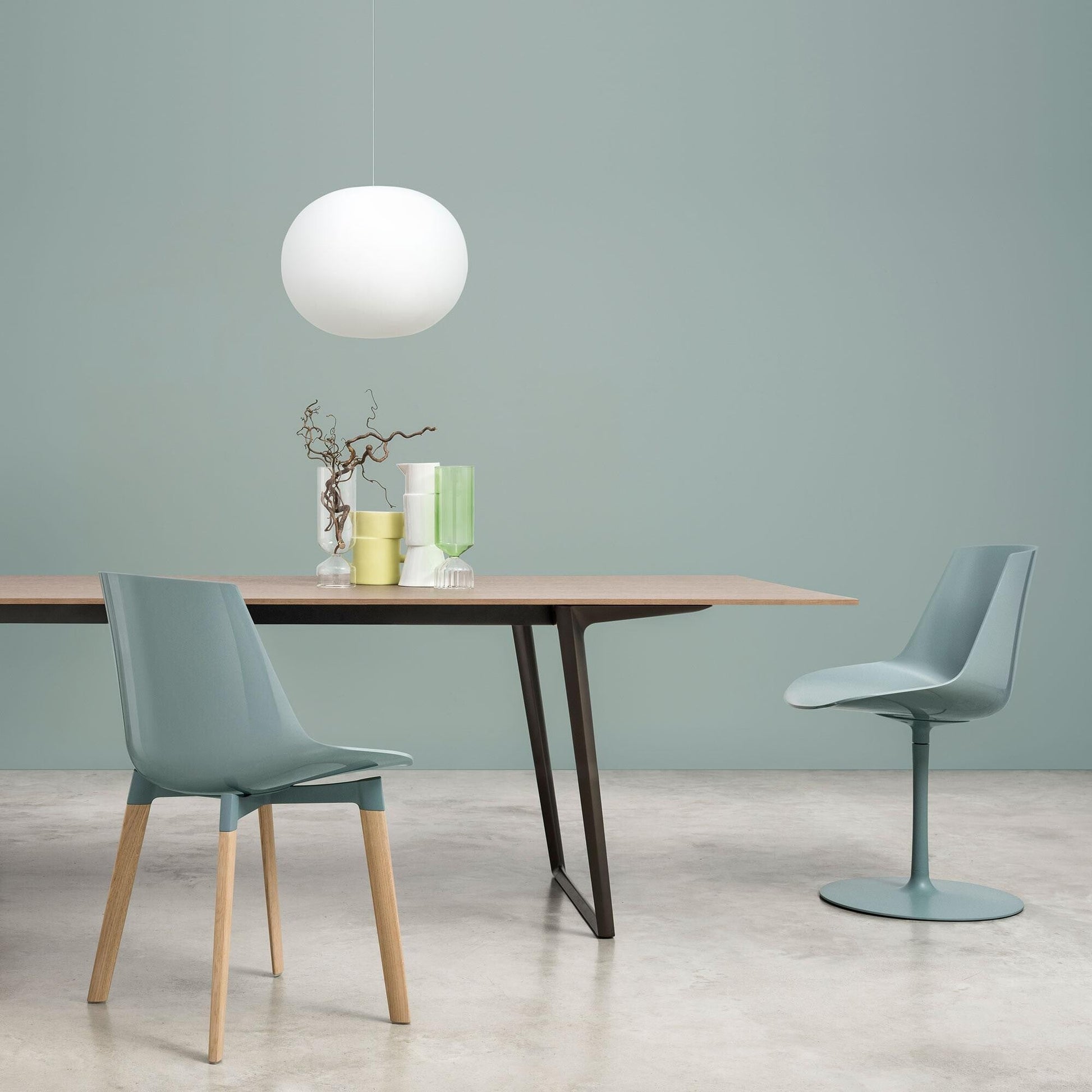 Der Flow Stuhl Tellerfuß von MDF Italia ist ein Meisterwerk der italienischen Designkultur. Entworfen von Jean-Marie Massaud, einem der renommiertesten Designer der Welt, verbindet dieses Stück exklusiver Möbelkunst die Perfektion italienischer Handwerkskunst mit der Eleganz moderner Architektur.