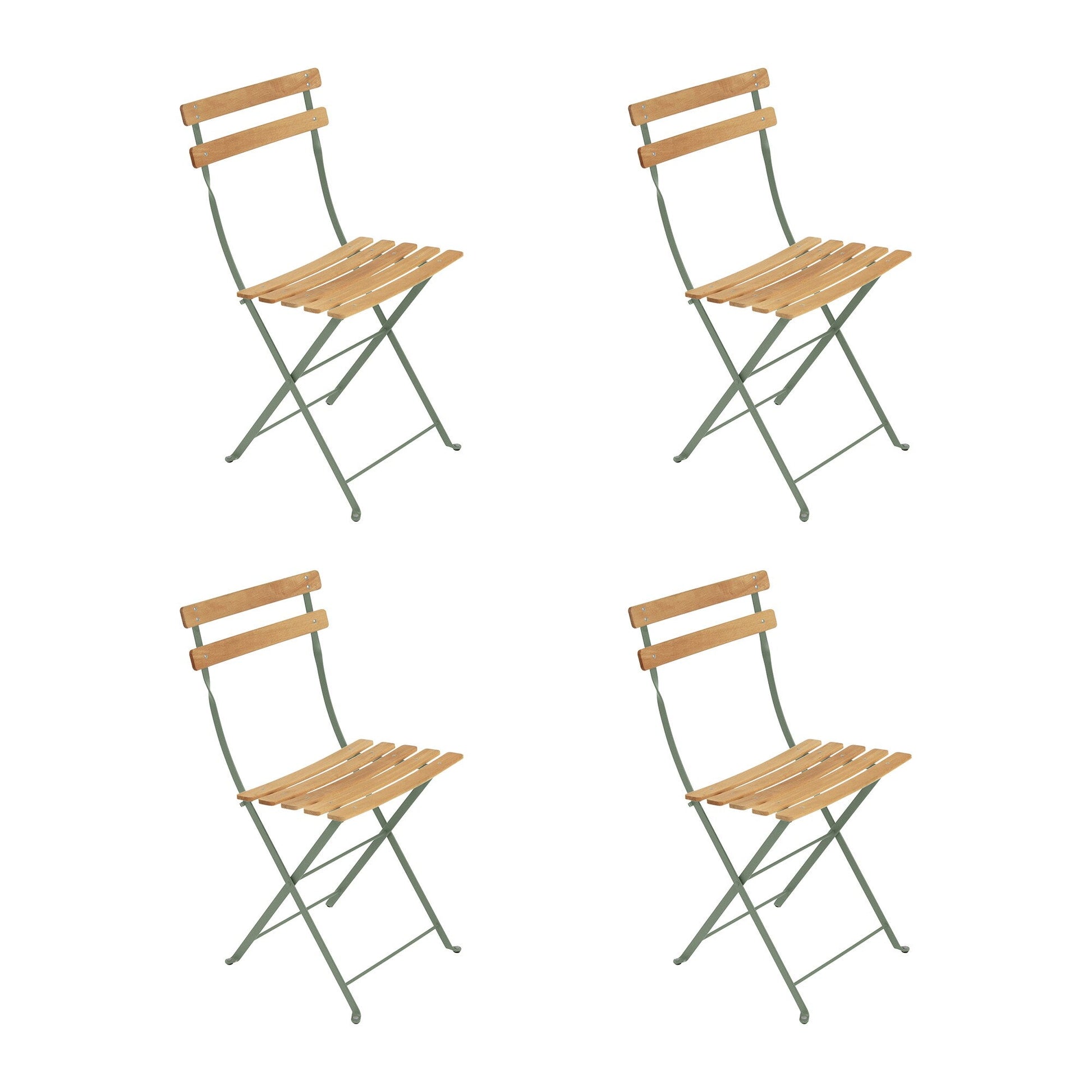 Auf Anfrage sind die Gestelle der Bistro Naturel Klappstühle in allen Fermob Bistrofarben erhältlich. Alle Bistro-Produkte von Fermob werden mit Kunststoffschonern geliefert.