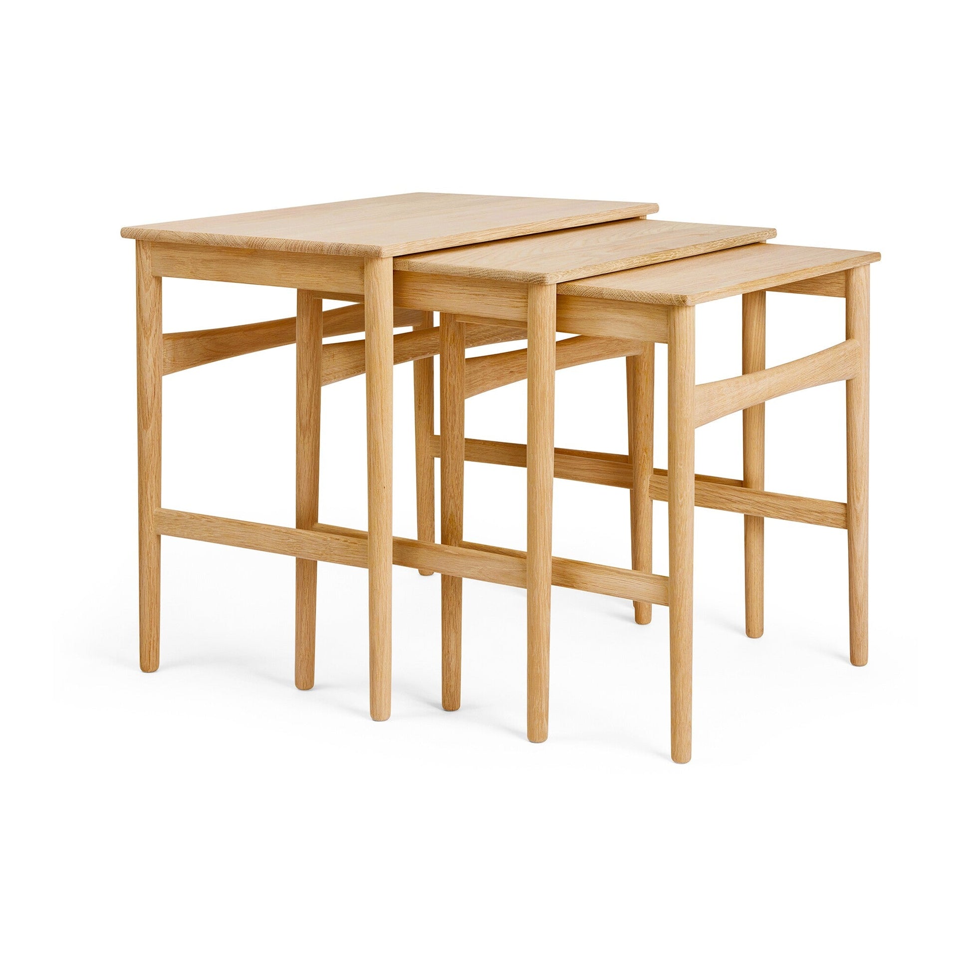 Das CH004 Nesting Tables 3er Set ist ein Meisterwerk des dänischen Möbeldesigners Hans J. Wegner für die Marke Carl Hansen. Seit seiner Einführung im Jahr 1952 hat sich dieses Set aus drei Beistelltischen zu einem echten Klassiker entwickelt, der mit seiner Funktionalität und skandinavischen Purismus im Design bis heute überzeugt.
