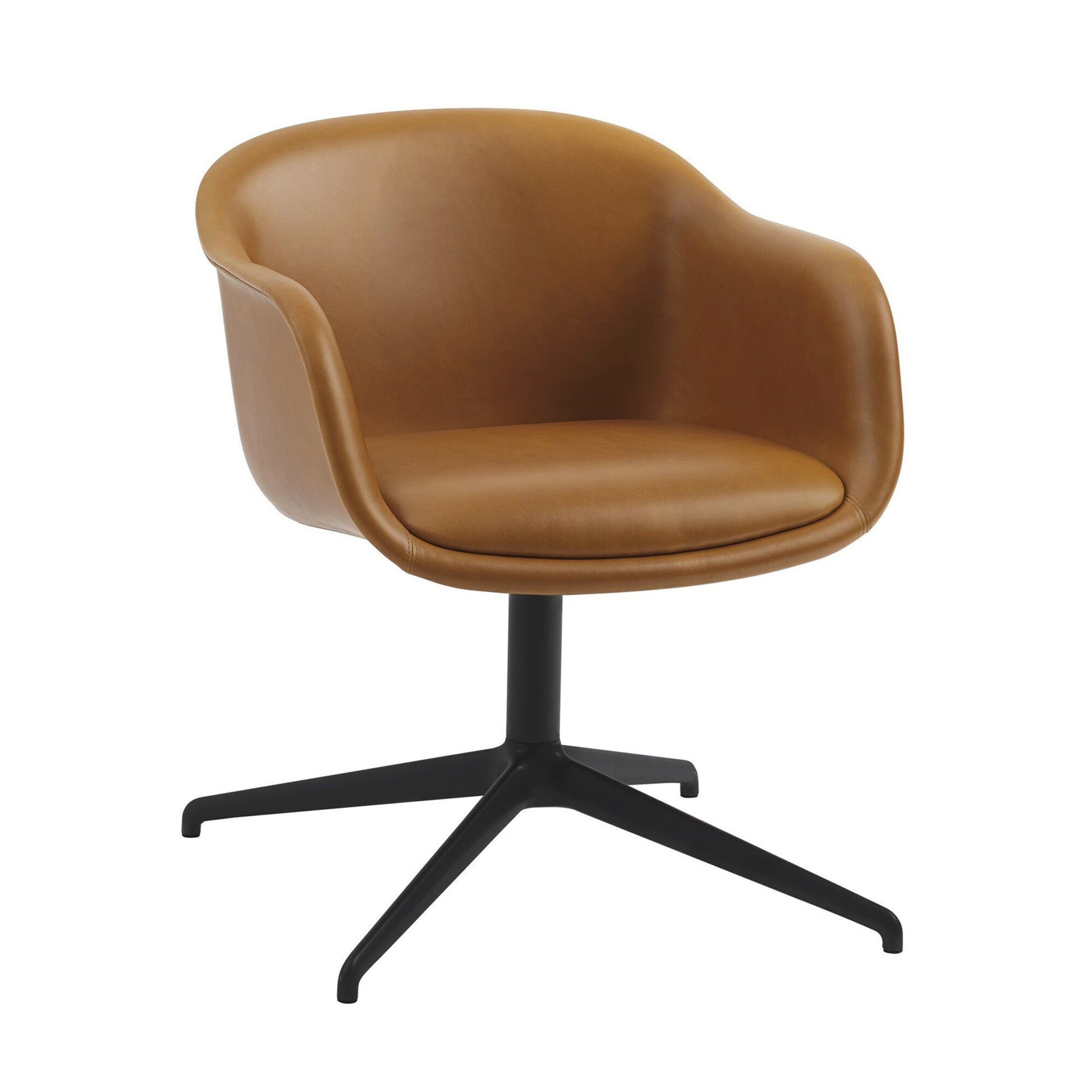Ausführungen: Fiber Conference Drehstuhl gepolstert Leder / cognac/Leder/BxHxT 63,5x77,5x60,5cm/Gestell schwarz/Rückholmechanismus