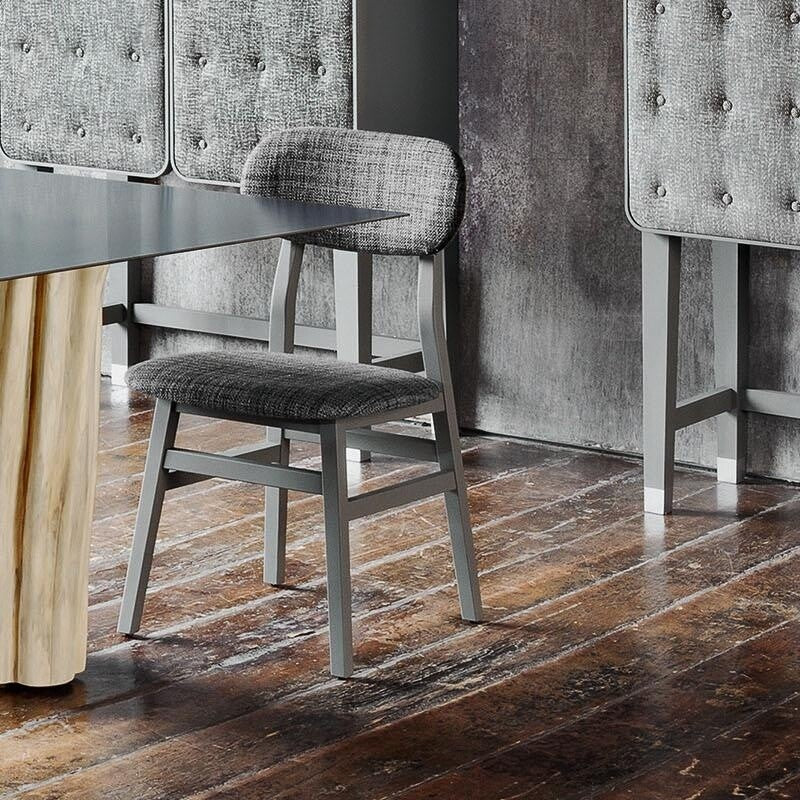 Ausführungen: Brick 223 Stuhl / grau/Gestell weiß/Sitz und Rücken gepolstert/Stoff Iuta Grigio/50x46x83cm