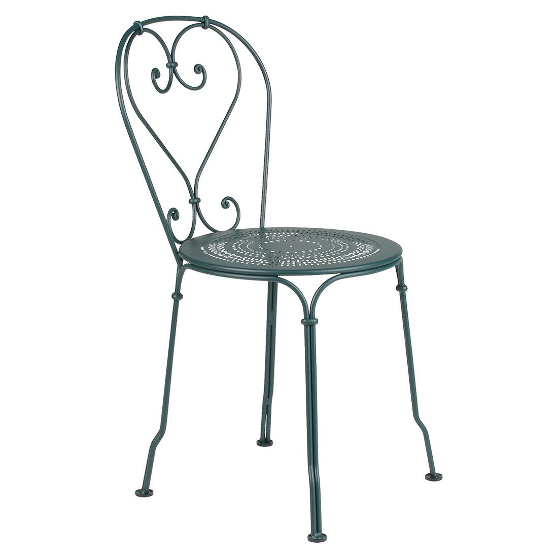 Das Gestell aus hochwertigem Stahldraht und die perforierte Sitzfläche aus Stahlblech verleihen dem 1900 Gartenstuhl eine leichte und dekorative Ausstrahlung, die sich perfekt in die Außenanlage eines Hotels, eines Straßencafés oder auf die Terrasse daheim einfügt. Die kunstvoll verarbeiteten Metallteile werden im französischen Thoissey von Hand geschmiedet und durchlaufen eine extra Schutzbehandlung, die eine hohe UV-Beständigkeit gewährleistet.
