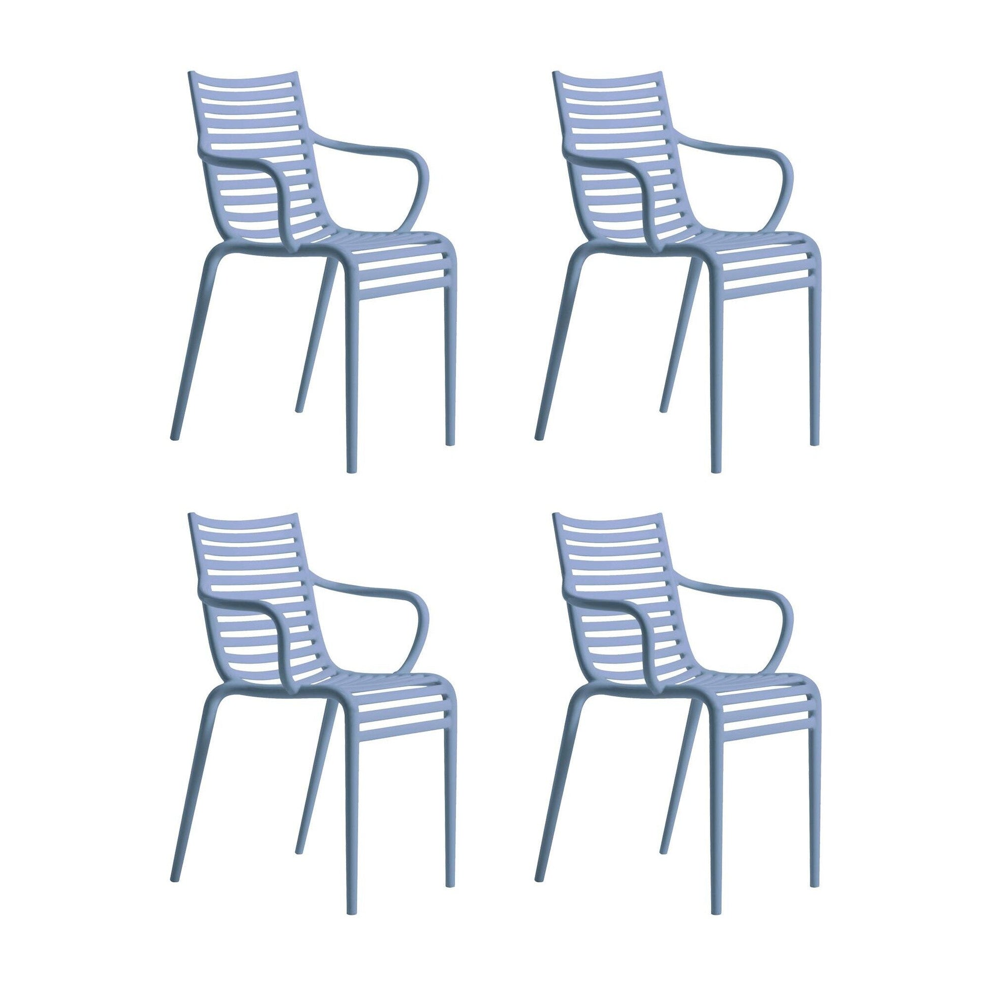 Das Pip-e Gartenarmlehnstuhl 4er Set ist aus hochwertigem Polypropylen gefertigt und bietet eine robuste und witterungsbeständige Konstruktion. Es ist perfekt für die Büroterrasse, den Hotelgarten oder das Gartenhaus daheim geeignet.