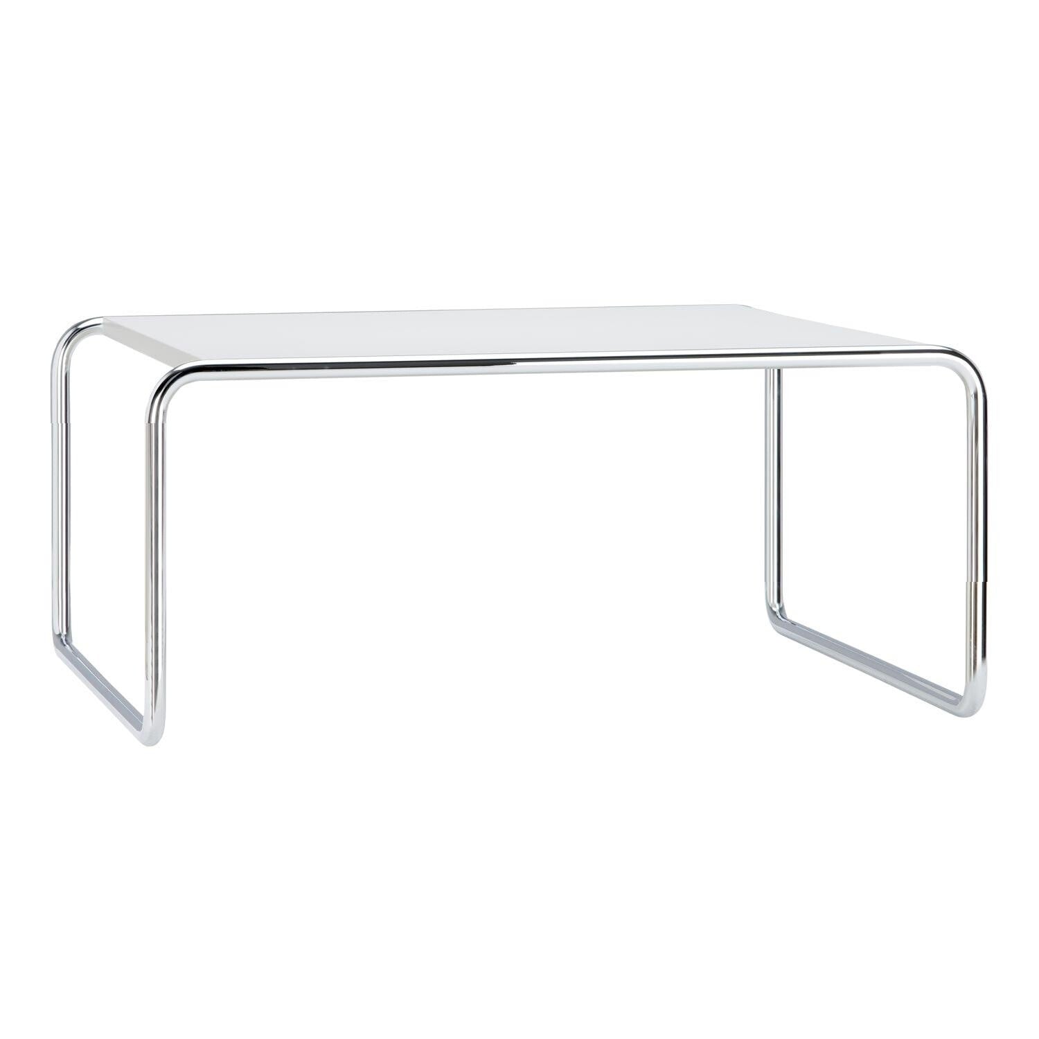 Ausführungen: B 20 a Couchtisch/Beistelltisch Esche / weiß/decklackiert/BxHxT 80x36x80cm/Gestell Stahlrohr vechromt