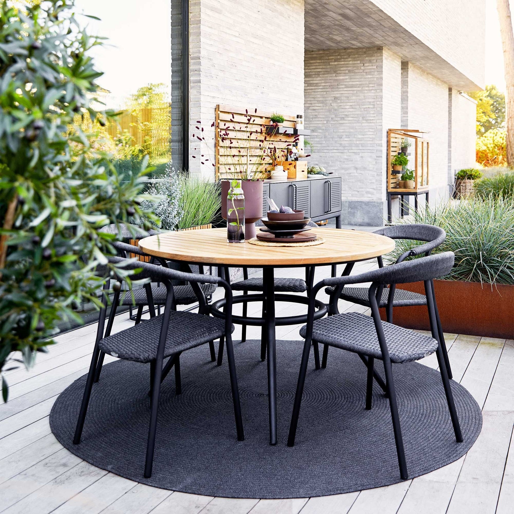 Der Noble Sessel gehört zu einer Serie hochwertiger Möbel, die auch Sitzgelegenheiten für den Innenbereich umfasst. Bei diesem Outdoormodell hat der Designer für Cane-Line Soft Rope, ein robustes Material, das speziell für die Marke produziert wurde, gewählt. Dieses Material ist zu einem feinen Stoff gewoben, der ein wenig an Rattanmöbel erinnert, und überzeugt mit seiner Wetterbeständigkeit. Der Noble Sessel kann daher auch bei Regen im Freien verweilen, ohne dass das Material Schaden nimmt. Da der Bezug schnell trocknet, können die Möbel rasch wieder verwendet werden. Das elegant geformte Gestell aus Aluminium trägt ebenfalls zum harmonischen Erscheinungsbild bei. Die vier Füße gehen in eine sanft geschwungene Armlehne und die gepolsterte Rückenlehne über.