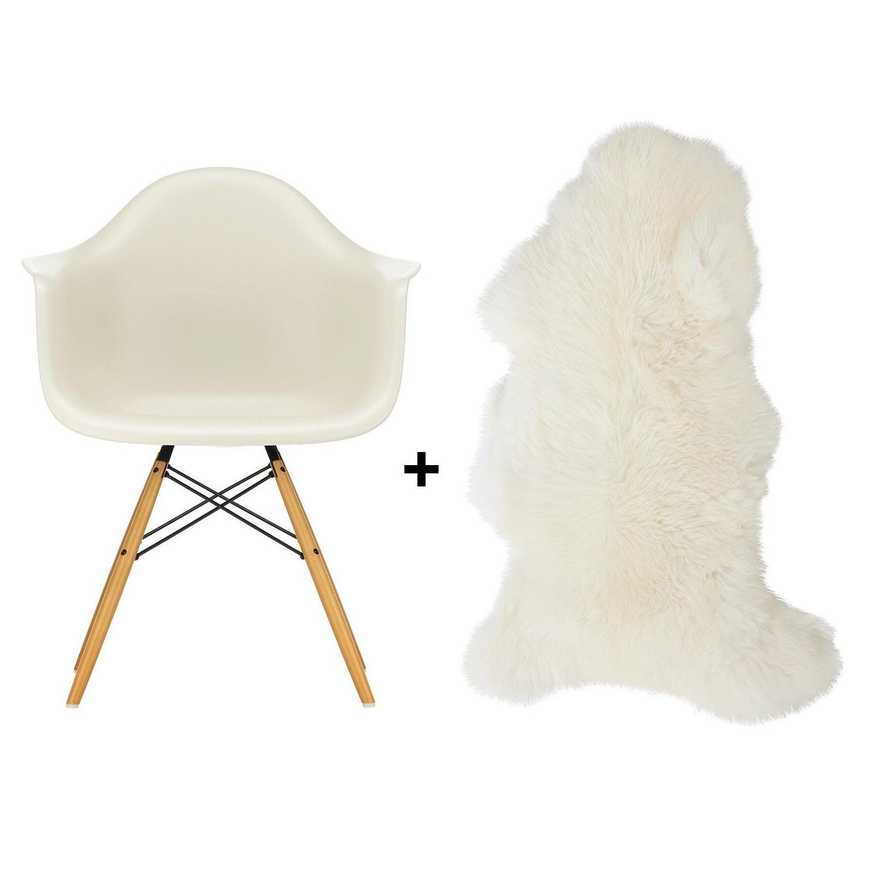 Das Eames Plastic Armchair DAW RE ist ein ikonisches Designstück, das durch seine elegante Form und seine hochwertige Materialität überzeugt. Die Kombination mit dem kostenlosen Lammfell ergänzt sich perfekt, um ein einzigartiges Sitz-Erlebnis zu schaffen, das sowohl die Sinne als auch das Auge begeistert.