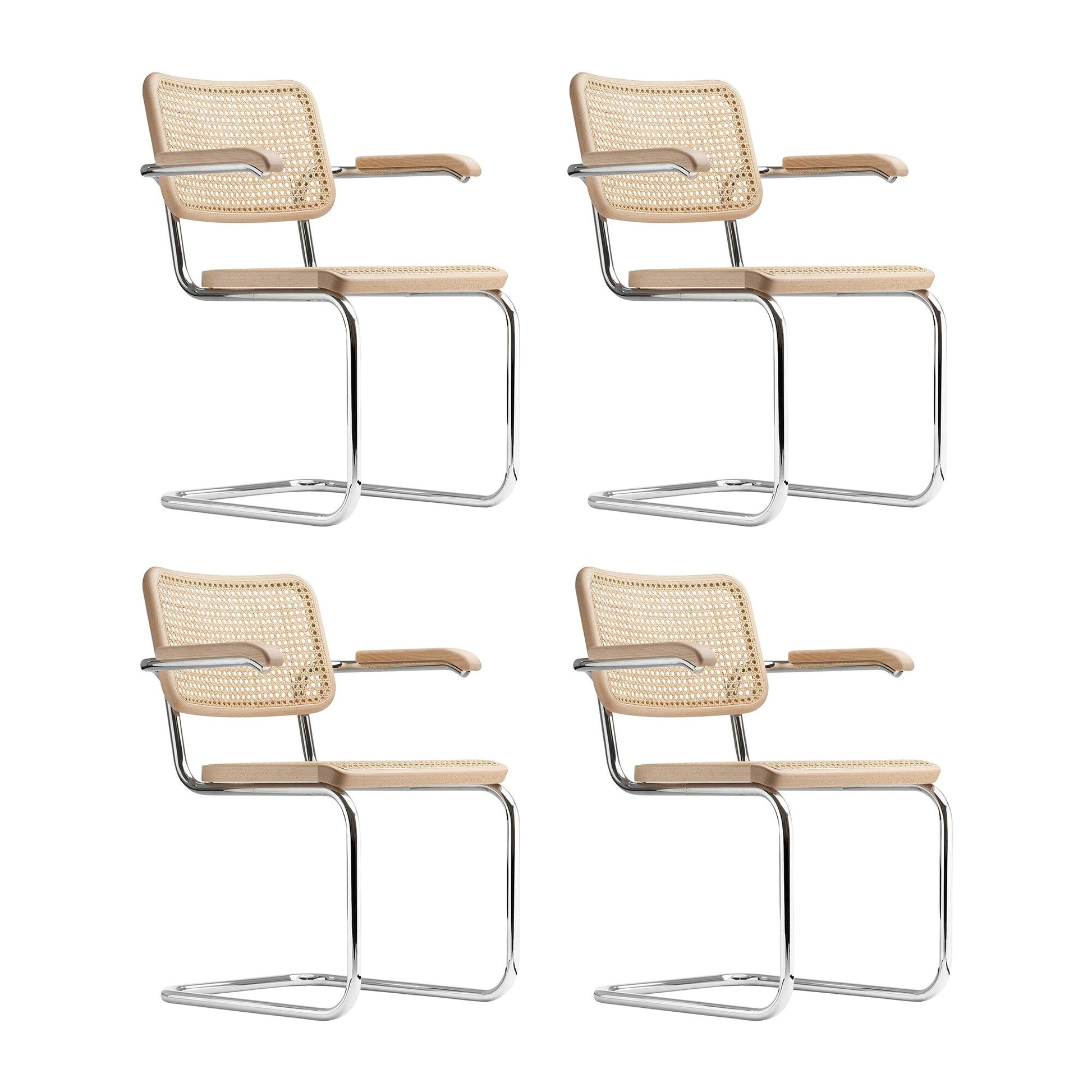 Ausführungen: S 64 V Freischwinger Armlehnstuhl mit Rohrgeflecht 4er Set / buche natur TP 17/Rohrgeflecht mit Netzverstärkung/Holz Buche schwarz TP 17 gebeizt/Gestell Stahlrohr vechromt