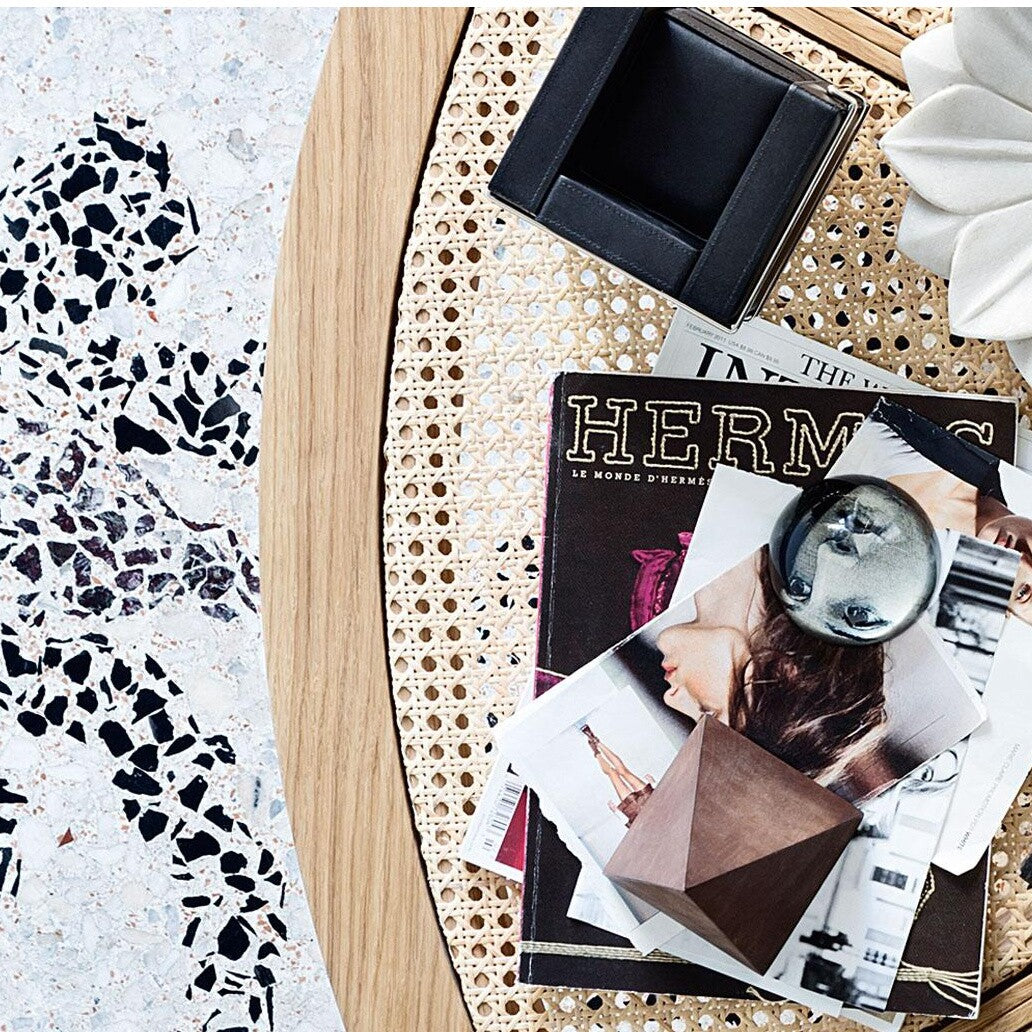 Ausführungen: 529 Rio Couchtisch / natur/Tischplatte Wiener Geflecht/H 33cm Ø 140cm/Gestell Eichenholz