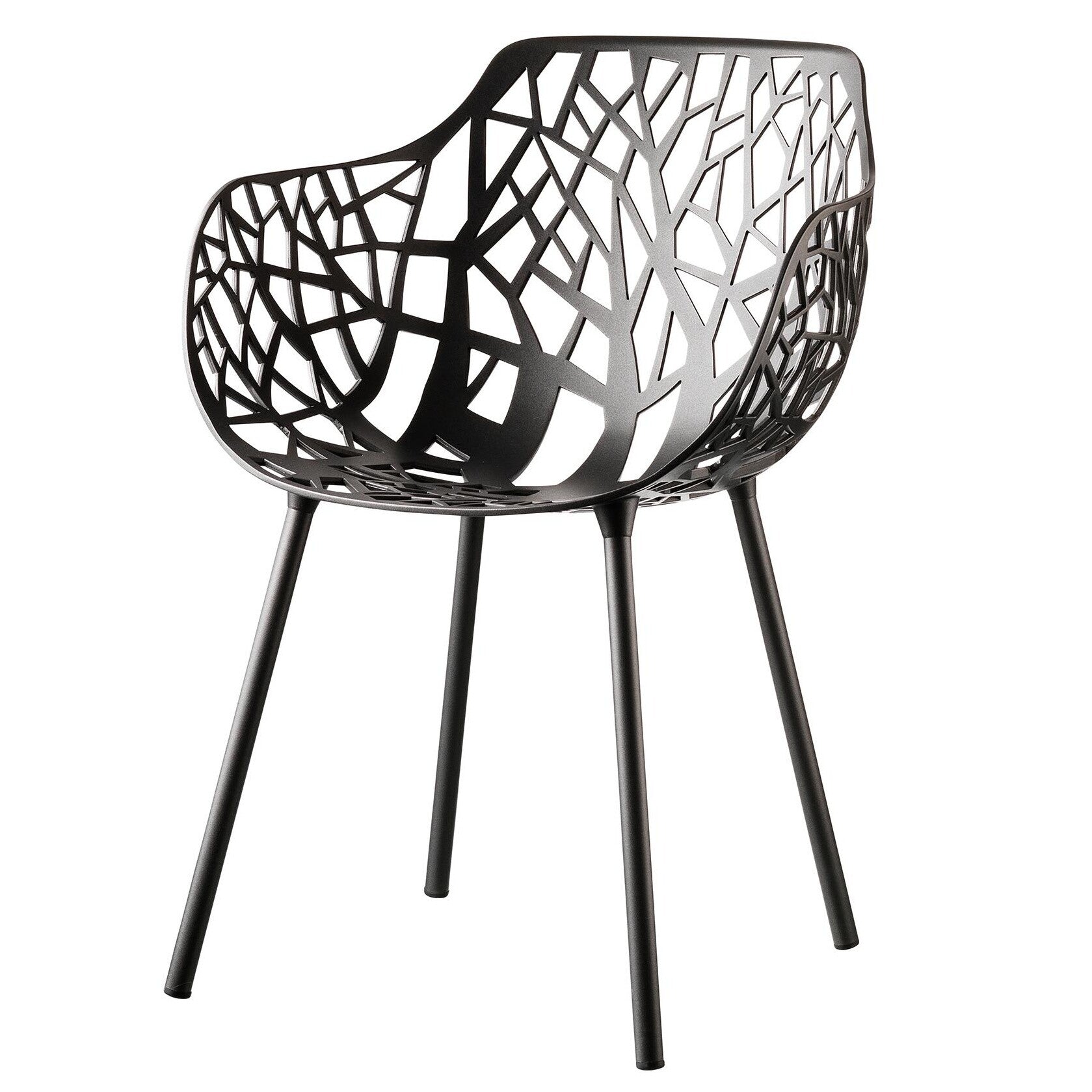 Diese skulpturale Arbeit ist nicht nur ein attraktiver Hingucker, sondern auch ein bequemes Sitzmöbel, das durch seine pulverbeschichtete Oberfläche besticht und durch Langlebigkeit überzeugt. Die vier ausgestellten Beine sorgen für eine hohe Standfestigkeit und machen den Forest Gartenarmlehnstuhl zu einem idealen Gesellschafter für eine Terrasse, ein Atrium oder auch das Wohnzimmer.