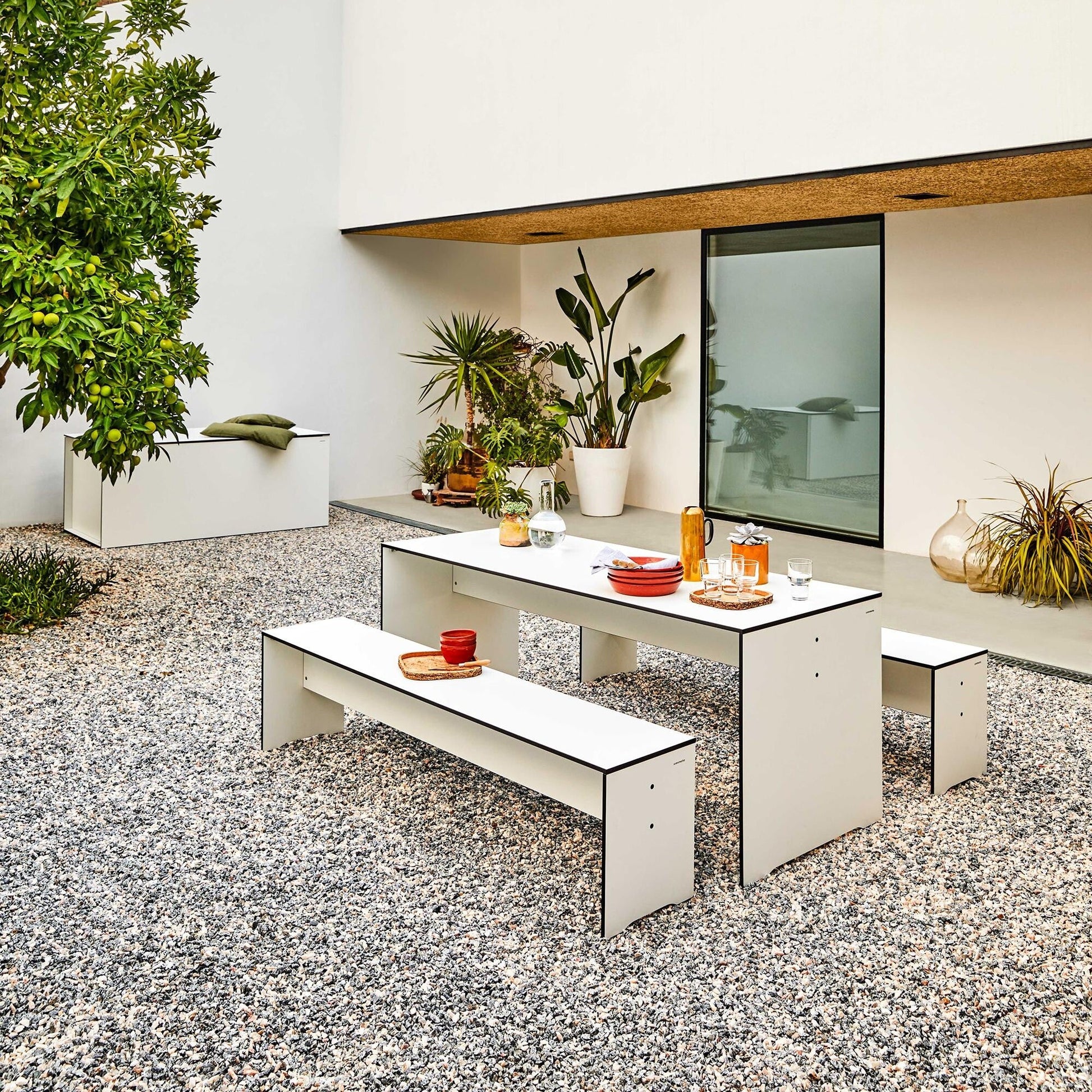 Mit ihrer geradlinigen, hellen und wetterfesten Eleganz ist die Riva Bank ein Lichtblick in jeder Einrichtung, auf Terrassen und in Innenbereichen. Sie besteht aus kratzfestem HPL Kunststoff und ist in verschiedenen Größen und Farben lieferbar, wie in unserer Riva Produktvarianten zu sehen ist.