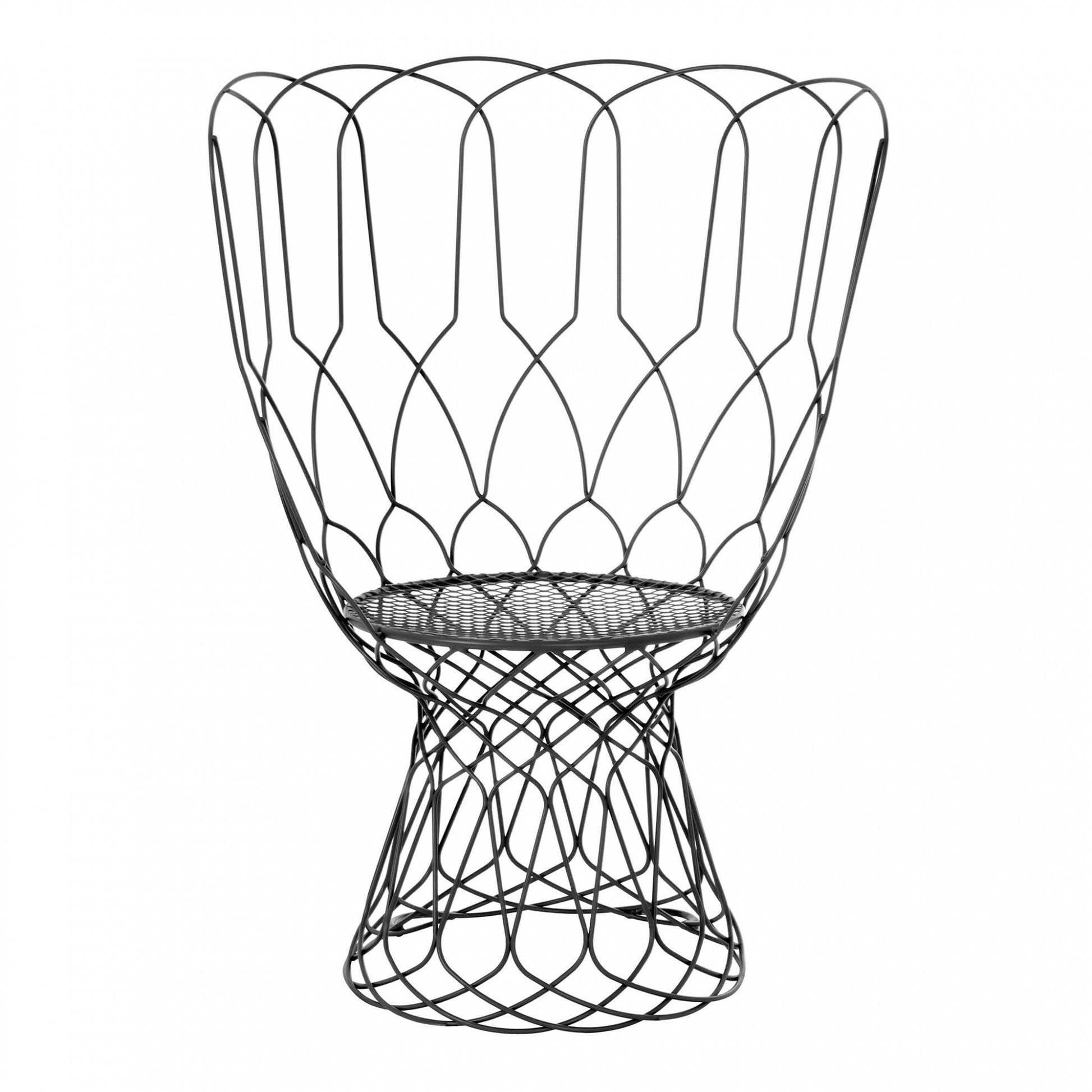 Die skulpturale Formgebung des Re-Trouvé Gartensessels verdankt sich seiner raffinierten, grob verflochtenen Netzstruktur, die transparent und leicht wirkt. Dieses verspielte Sitzmöbel passt perfekt in den Wintergarten, auf die Terrasse oder mitten in die Wiese und kann sowohl als Solitär als auch in einem Re-Trouvé-Ensemble verwendet werden. So findet es auch im Außenbereich eines Designhotels seinen Platz.