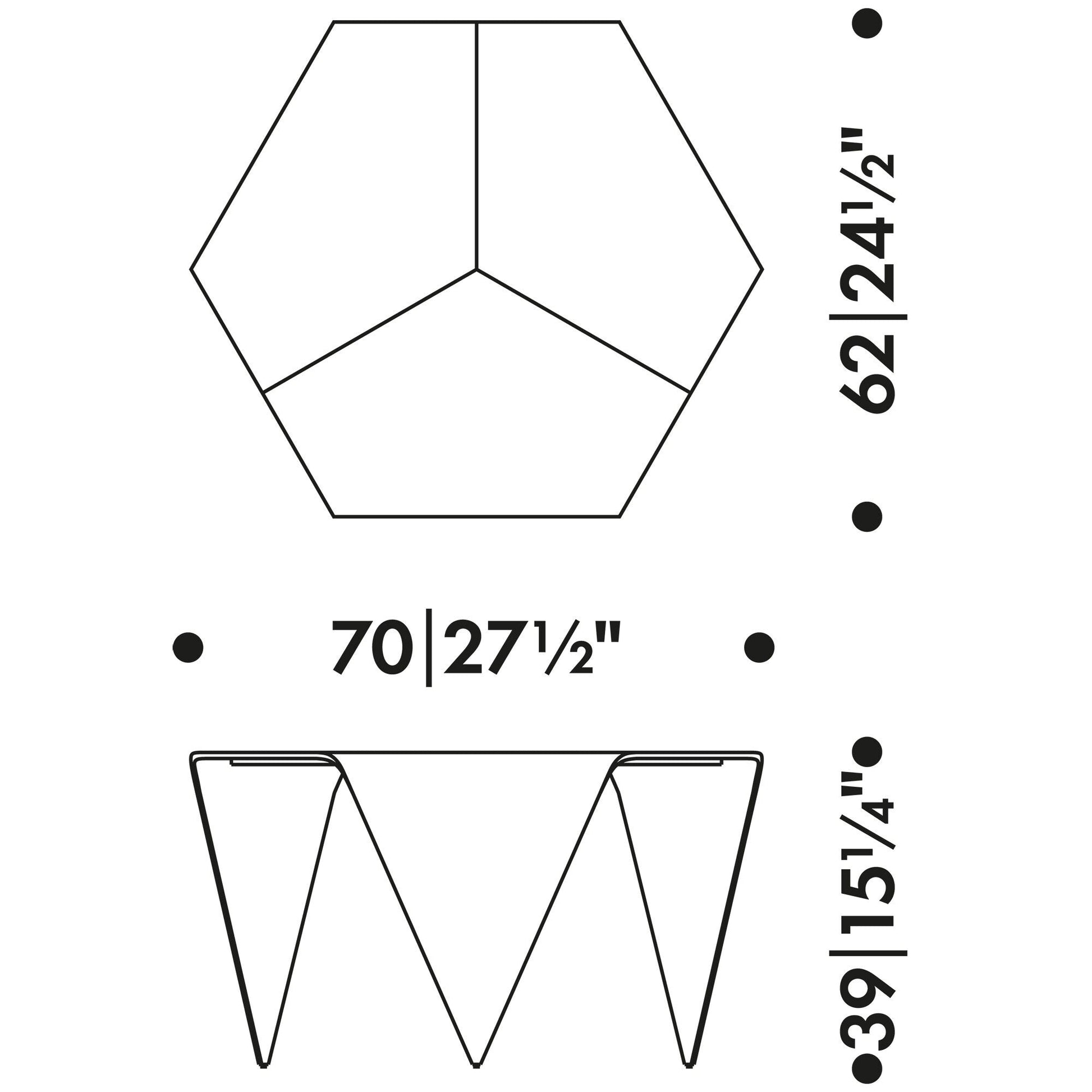 Mit einer Höhe von 39 cm und einer Tischfläche von 70 x 62 cm bietet der Trienna Beistelltisch genügend Platz für Getränke und großformatige Coffeetable-Bücher. Das individuelle Muster der Holzmaserung auf der Tischfläche unterstreicht den spannenden Kontrast zwischen der eindeutig artifiziellen Formensprache und der organischen Herkunft des Materials. Der Trienna Beistelltisch ist ein echter Designklassiker, der in jedem modernen Interieur wie geschaffen ist.