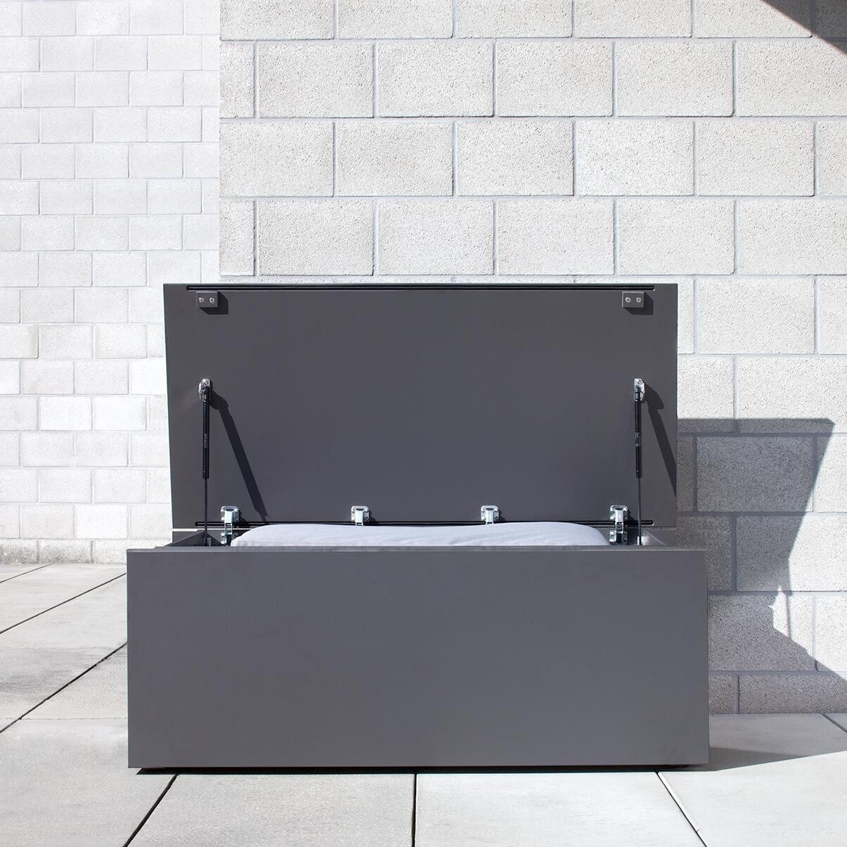 Die Gasdruckfedern erleichtern das Öffnen und verhindern das unbeabsichtigte Überschlagen des Deckels, während das schlichte Design und das verwendete HPL-Material die Kissentruhe El Pecho perfekt in jede Conmoto-Outdoor-Kollektion integrieren lassen. Ob RIVA, RIVA Lounge, JIG oder TENSION - die El Pecho Kissentruhe passt sich jeder Gartenserie an und kann auch als wunderschönes Solitär verwendet werden.