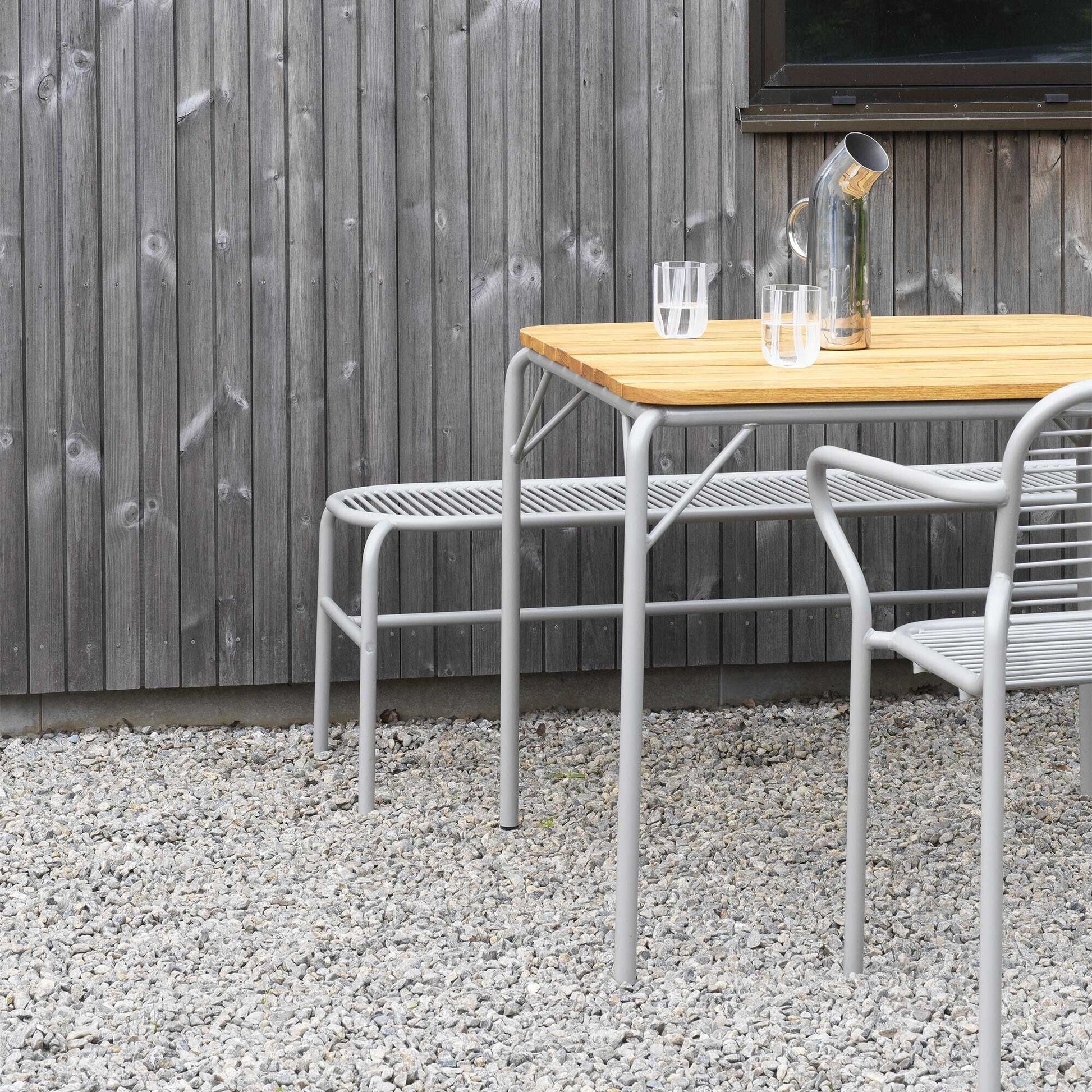 Die Vig Gartenbank ist gefertigt aus doppelt pulverbeschichtetem Stahl, das Material ist auf Langlebigkeit und einen jahrelangen Gebrauch im Freien ausgelegt. Die witterungsbeständige Gartenbank benötigt lediglich ein feuchtes Tuch mit Wasser und neutralem Reiniger zur Pflege.