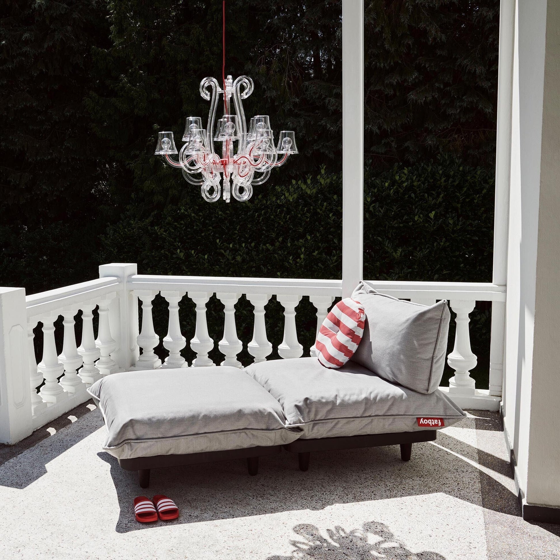 Das Paletti Outdoor Daybed ist ein Teil eines modularen Outdoormöbel-Systems, das eine komplette Gartenausstattung ermöglicht. Die zweigeteilte Matratze liegt auf einer Palette aus Polypropylen mit verstellbaren Füßen, während die Bezüge für Kissen und Matratze in unterschiedlichen farblichen Ausführungen zur Auswahl stehen. Diese wurden aus langlebigem, UV-beständigem Olefin-Stoff gefertigt und sind von innen mit einer PVC-Beschichtung sowie von außen mit einer wasser- und schmutzabweisenden Beschichtung versehen.