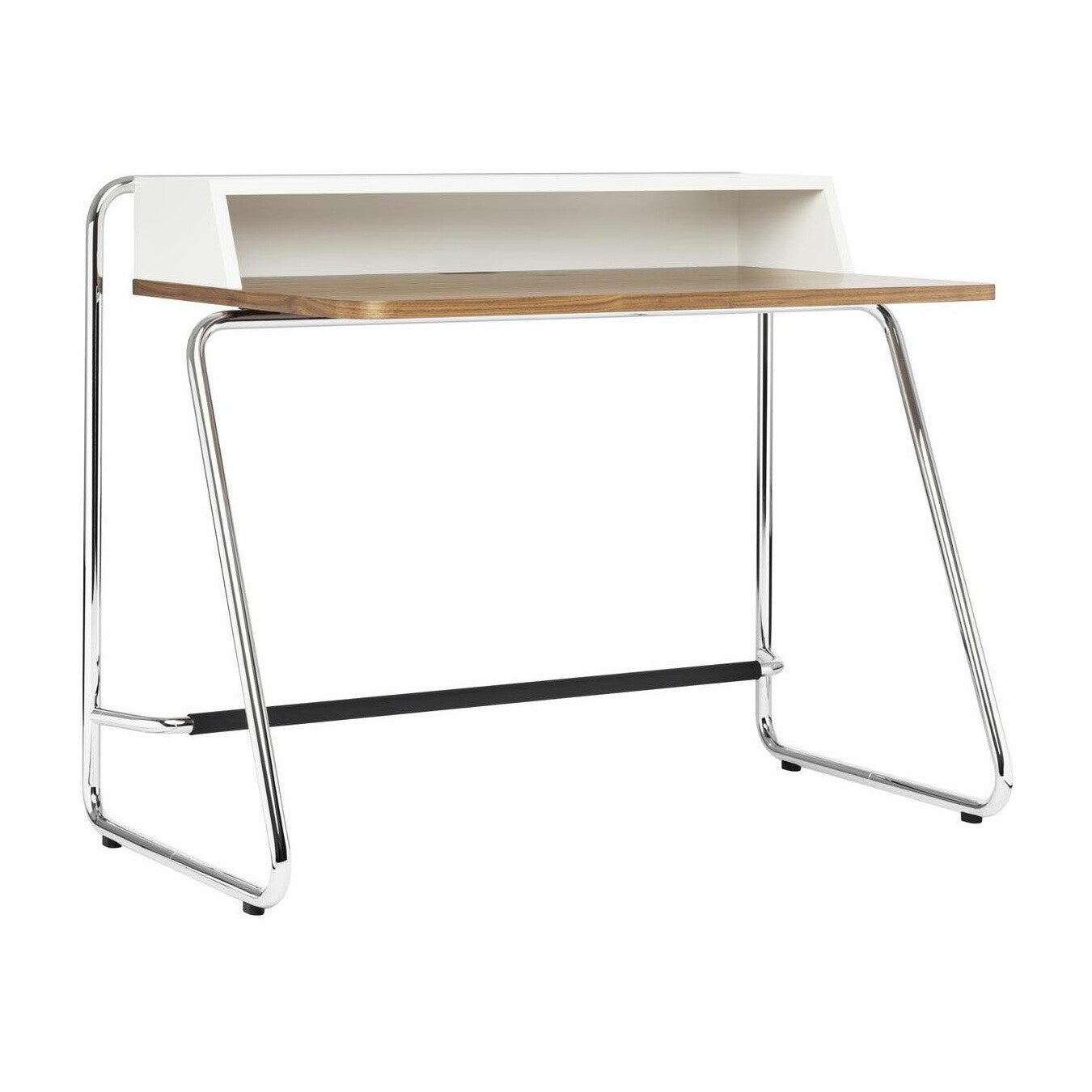 Ausführungen: S 1200 Sekretär / Aufsatz MDF weiß RAL 9010 decklackiert/Platte Nussbaum klar lackiert/BxHxT 110x88x67cm/Gestell Stahlrohr vechromt