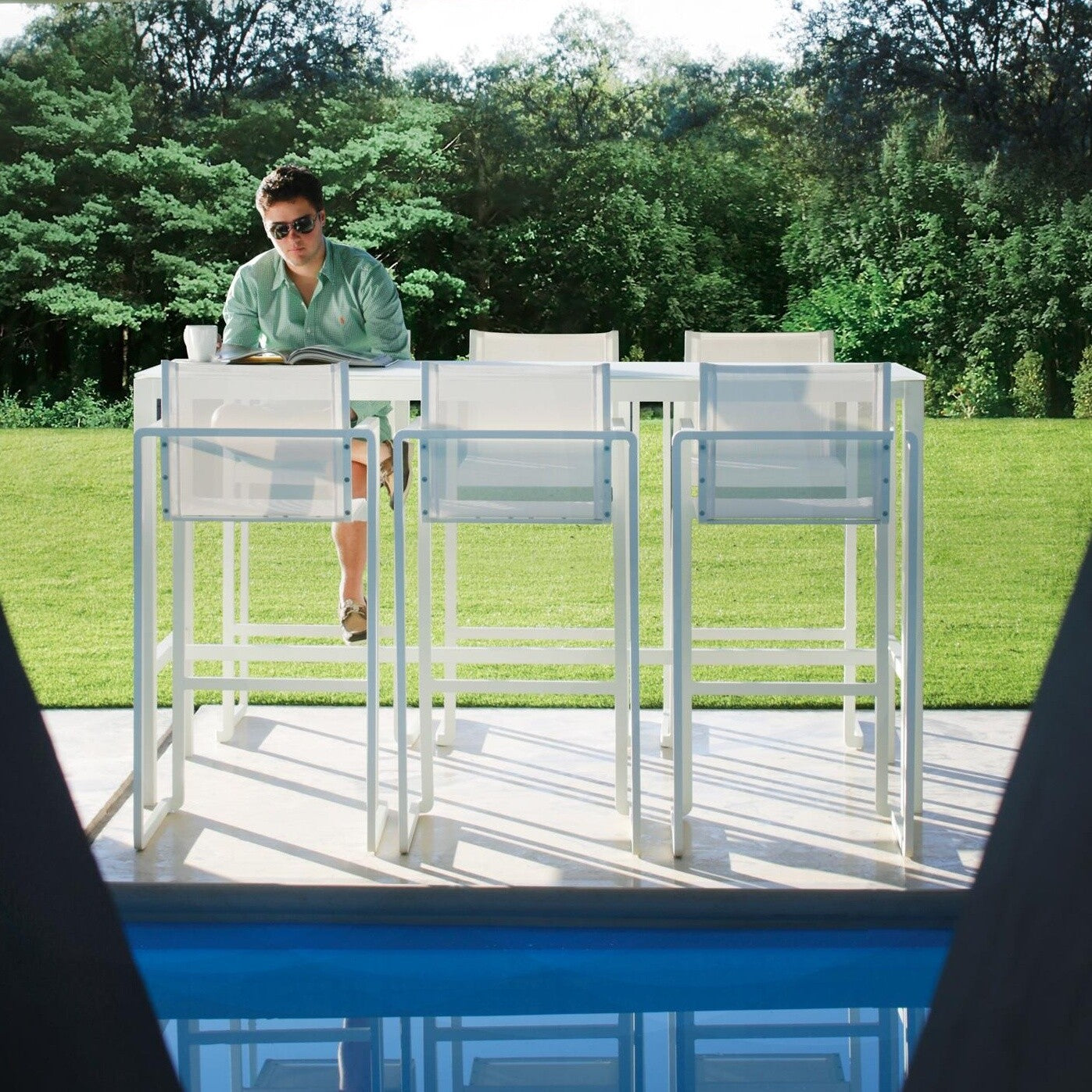 Der Alura Barstuhl zeichnet sich durch seine minimalistischen Verzierungen und die langgezogene Form aus, die von den klassisch gehaltenen Flächen und der hochwertigen Materialzusammenstellung Aluminium und Kunststoff umrahmt wird. Die geradlinige Erscheinung und die unverkennbare Fußstütze machen ihn zu einem echten Hingucker in jedem stilvollen Bar-Ambiente. Mit seinen Abmessungen von 57 x 124 x 48 cm passt er sich perfekt in seine Umgebung ein.